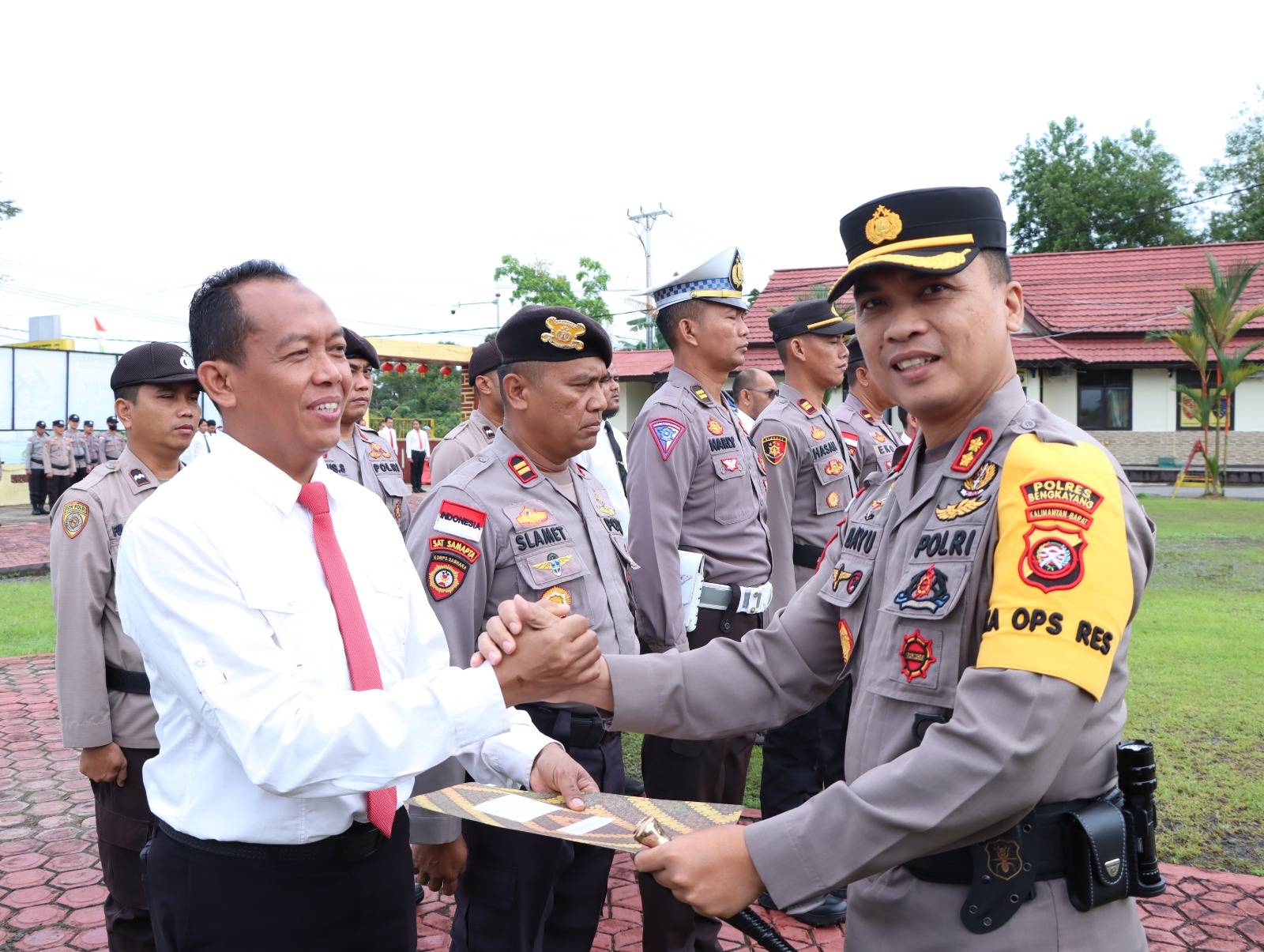 Bertempat di Halaman Mapolres Bengkayang, Kapolres Bengkayang AKBP Dr. Bayu Suseno, S.H., S.I.K, M.M, M.H., yang menjadi inspektur upacara dalam kegiatan tersebut, memberikan penghargaan kepada 127 Personel Polres Bengkayang yang berprestasi.