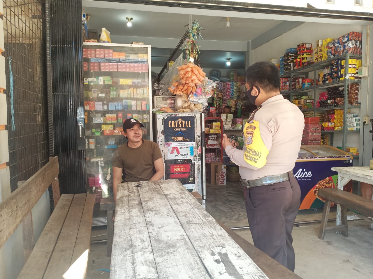Saat berada di sebuah warung kopi Pasar Monterado milik Sdr. Jimin, Brigadir Albertus Rio mendapati warga yang tak memakai masker.
