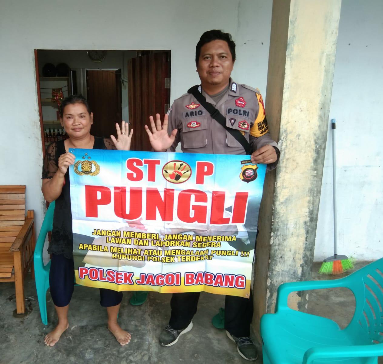 Tribratanews.polri.go.id.Polda Kalbar,Polres Bengkayang,Polsek Jagoi Babang-Bhabinkamtibmas desa Semunying jaya Brigadir Ario melakukan sosialisasi pungli kepada warga mengajak agar bersama-sama berantas pungli, Rabu (25/1/2023), Pagi.