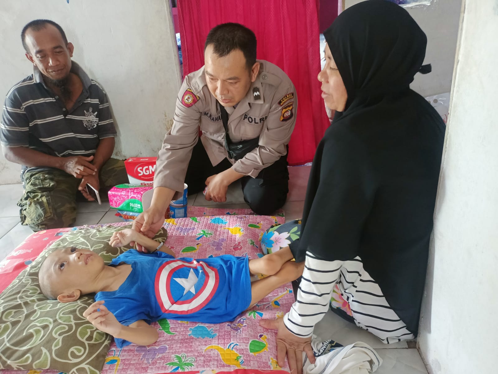 ” Alhmdullilah, kali ini sedekah pada hari Jum’at tanggal 28 Oktober 2022 sekira pukul 10.45 Wiba, Aipda M.Kahar.K mengunjungi kediaman bapak Rifahwan yang memiliki anak dalam kondisi sakit cacat secara fisik sejak umur 1 tahun hingga saat ini berumur 5 tahun yang kurang memiliki biaya perobatan, menurut keterangan dokter sebelum umur sampai satu tahun anak ini dikatagorikan penyempitan saluran saraf, tapi setelah itu sampai berumur 5 tahun sekarang ini pun tidak memgetahui apa penyakit anak dari bapak Rifahwan tersebut.