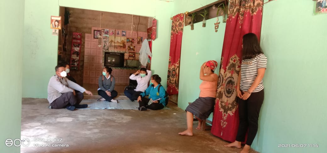 Polres Bengkayang – Personil polsek Teriak Aipda S. Saragih laksanakan pendampingan dalam giat tracing kontak erat Covid-19, Senin (07/06/2021).