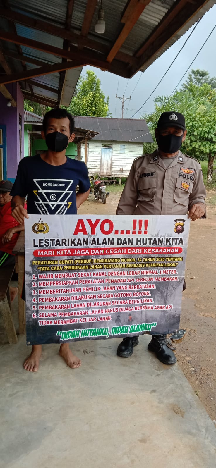 Aiptu Ahmad Yusuf selaku bhabinkamtibmas Desa Jesape menyambangi serta menyampaikan pesan pesan kamtibmas kepada warganya, Agar sesegera mungkin melaporkan ke Kantor Desa ataupun Polsek terdekat jika mengetahui atau akan melakukan pembakaran hutan dan lahan ataupun orang yang dengan sengaja melakukan pembakaran lahan karena dapat dihukum berdasarkan undang-undang yang berlaku”, tegasnya.