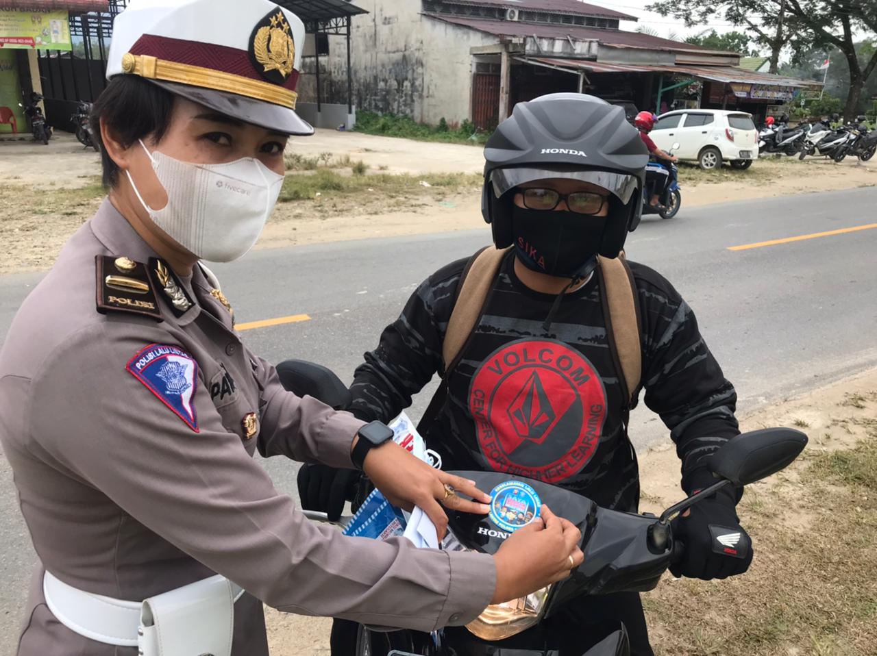 “Kegiatan ini bertujuan untuk memberikan himbauan kepada masyarakat, agar tetap waspada dan tetap lakukan prokes cegah penyebaran Covid-19,” kata Kasat Lantas.