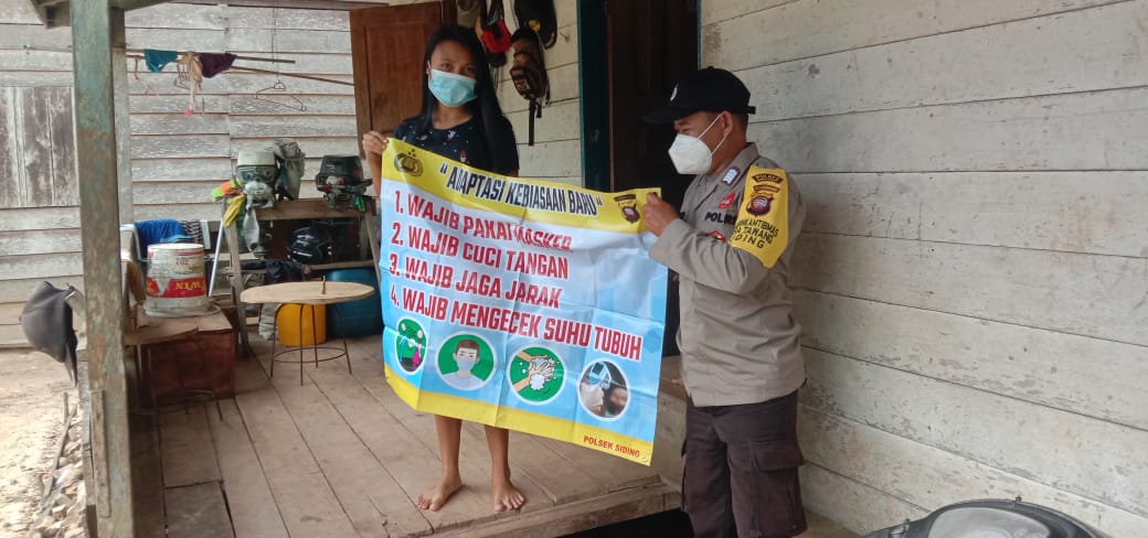 Dalam pencegahan meluasnya penularan covid-19, Personil Polsek Siding, Polres Bengkayang, Polda Kalbar, Bripka Bartolomeus melaksanakan sosialisasi protokol kesehatan melalui spanduk himbauan guna mencegah penyebaran covid-19 di Kecamatan Siding Kabupaten Bengkayang Provinsi Kalbar. Kamis (19/08/2021).