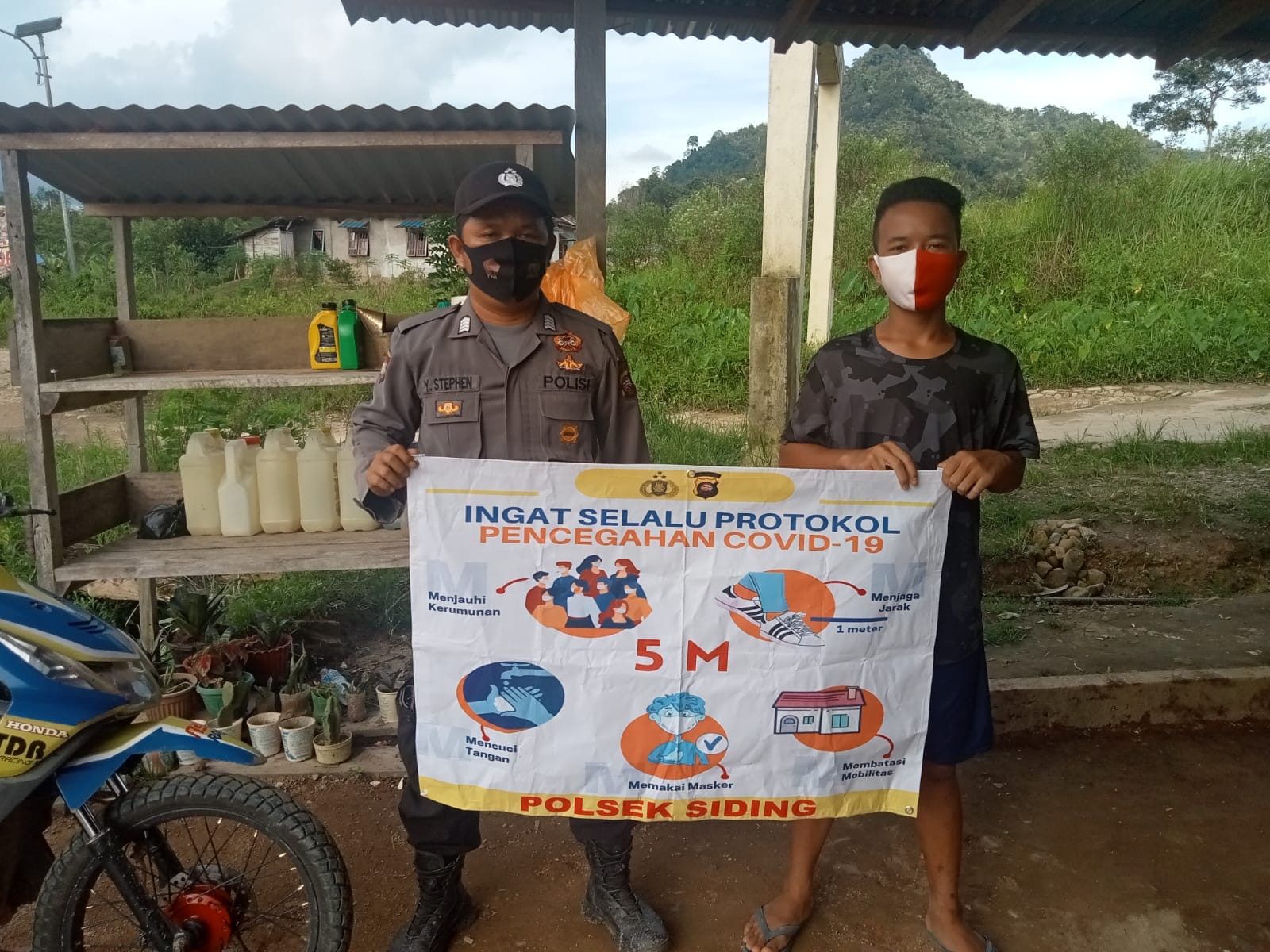 “Kegiatan ini bertujuan untuk menyadarkan dan mendisiplinkan masyarakat dalam melaksanakan protokol kesehatan, targetnya menekan angka warga yang terinfeksi Covid-19″, kata salah satu Personil Polsek Siding Bripka Yully Stephen.