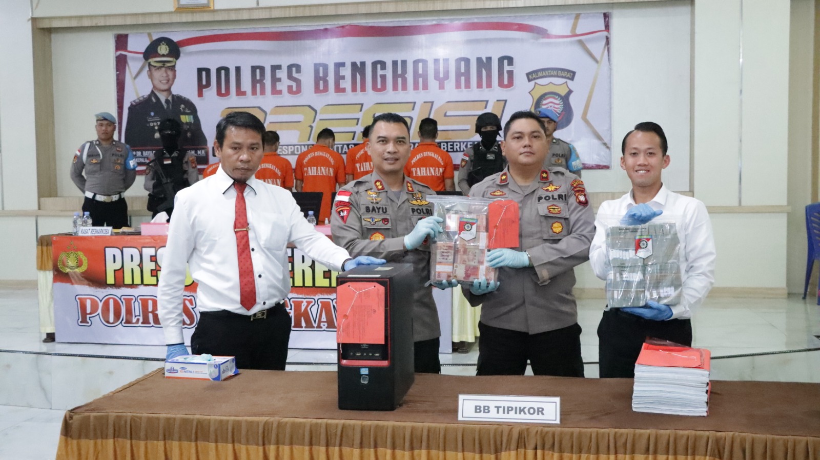 Dalam kesempatan itu, Kapolres menyampaikan mengenai kasus korupsi terkait pembangunan PIBI Center Bengkayang yang mana pihaknya telah menetapkan satu orang pria berinisial BB sebagai tersangka, yang diketahui oknum tersebut merupakan mantan Kepala BPKAD Kabupaten Bengkayang .