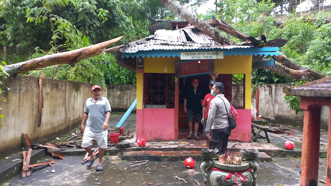 “Akibat dari pohon tumbang itu membuat atap klenteng menjadi rusak. Tidak hanya itu, bagian dinding klenteng juga mengalami kerusakan”, tutur IPDA Dwiyanto Bhanu.