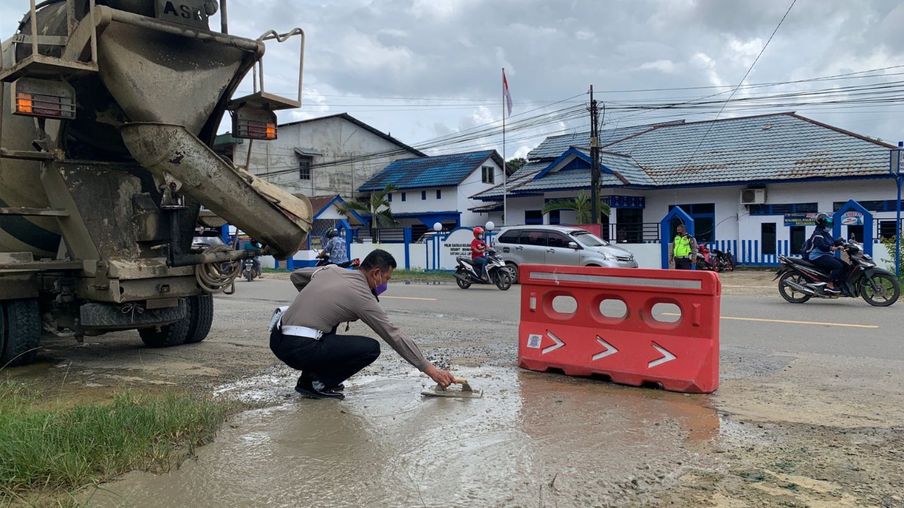 IPTU Sangidun menuturkan penambalan jalan dengan pengecoran dilakukan karena adanya laporan masyarakat yang memberikan curhatan kepada Sat Lantas.