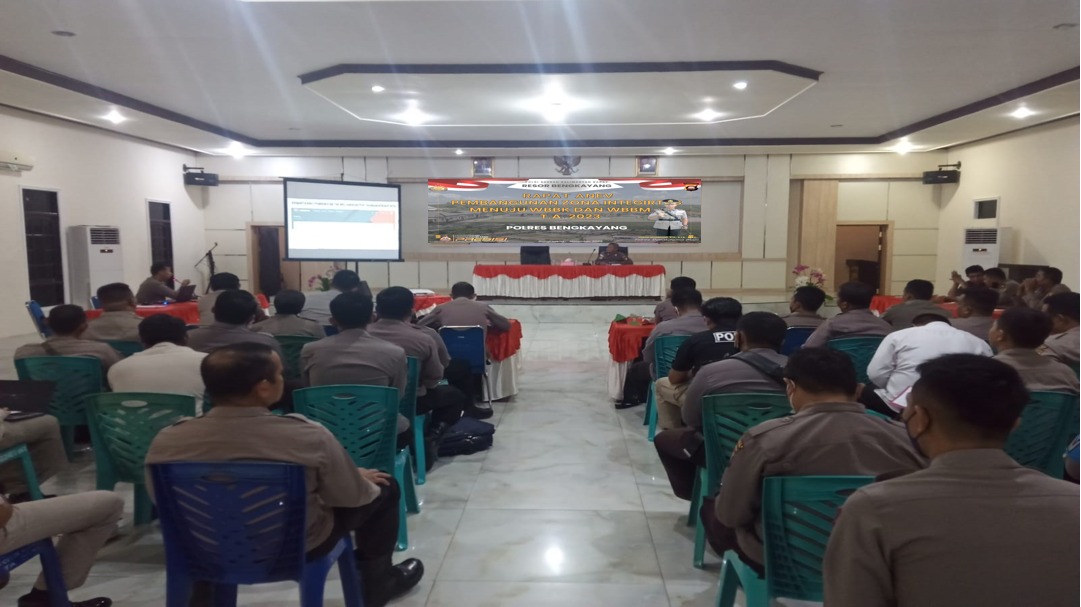 Dalam sambutannya Kapolres Bengkayang AKBP TEGUH NUGROHO, S.H., S.I.K, M.I.K. pada saat pelaksanaan Monev Pembangunan Zona Integritas menuju WBK/WBBM dilingkungan Polres Bengkayang bertempat diaula Panaluan Polres Bengkayang dihadiri seluruh Anggota dan Penanggung Jawab Ke 6 Area Perubahan.