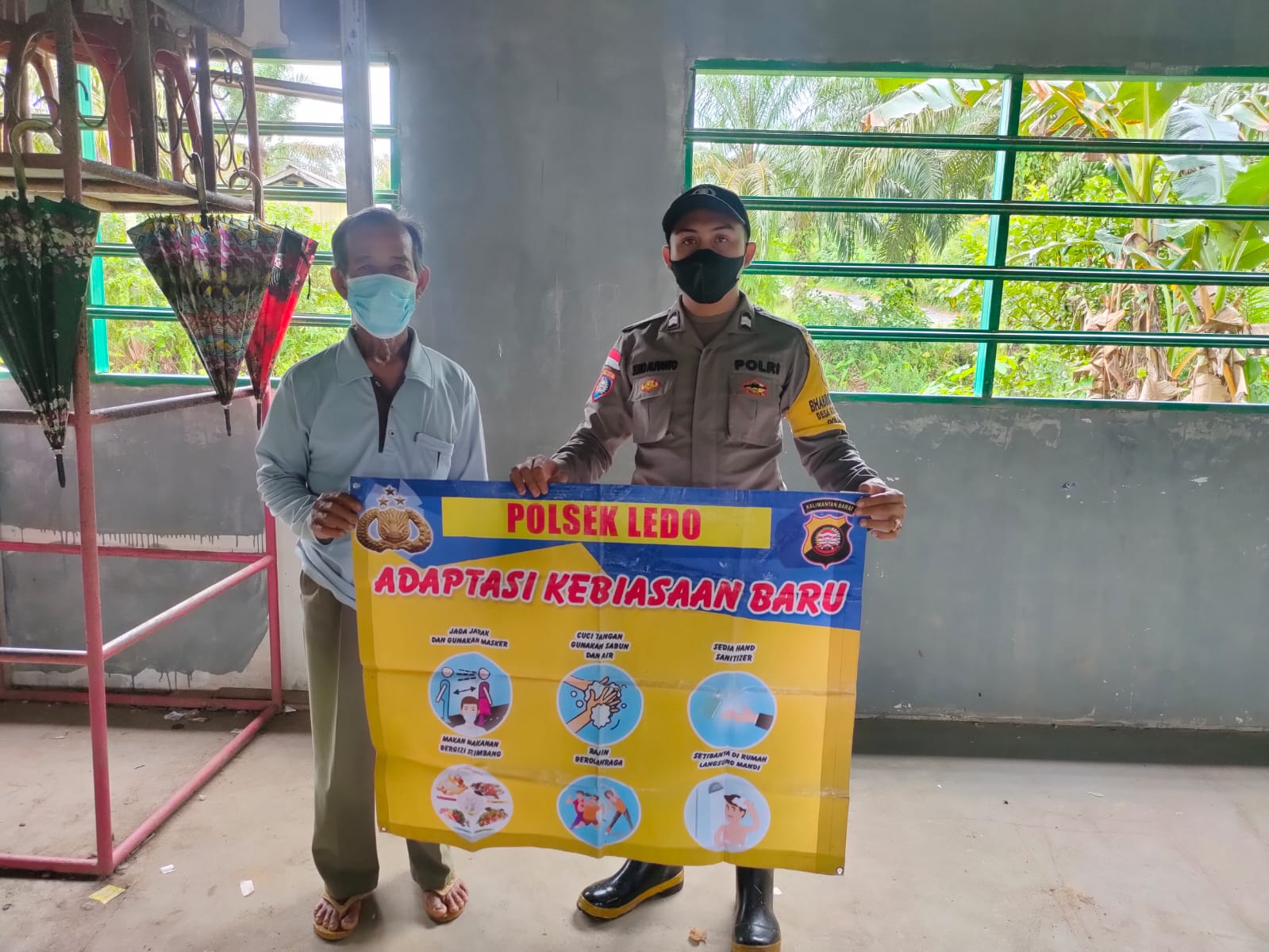 Anggota Bhabinkamtibmas Polsek Ledo dalam himbauannya tersebut antara lain Gunakan masker, jaga jarak, hindari kerumunan dan hindari kontak / sentuhan fisik secara langsung serta jaga kondisi kesehatan dan kebersihan diri seperti dengan rutin mencuci tangan menggunakan sabun dan air mengalir ataupun selalu bekali diri dengan hand sanitaizer.