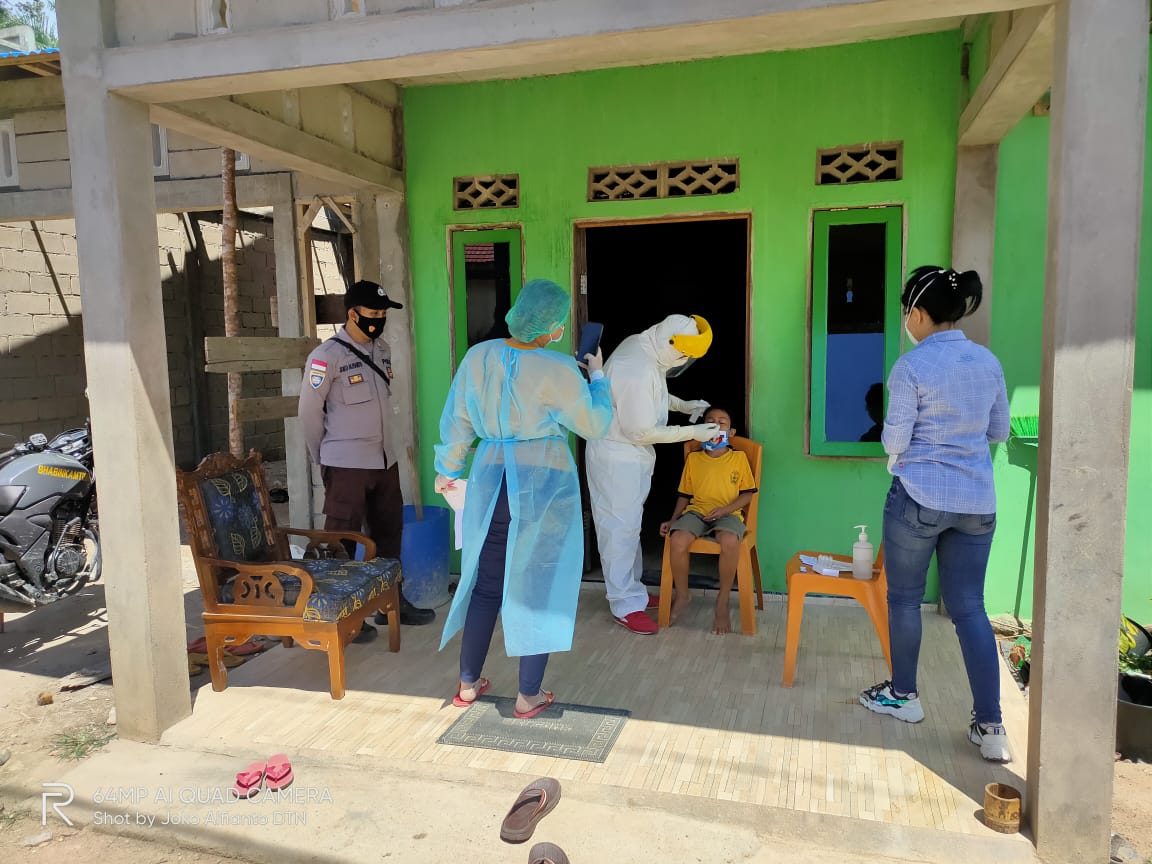 Tim Tracer Puskesmas Ledo dan Polsek Ledo dengan penuh semangat dalam melakukan tracing contact terhadap warga yang terpapar covid19 kemudian kepada warga tersebut dilakukan test swab antigen.