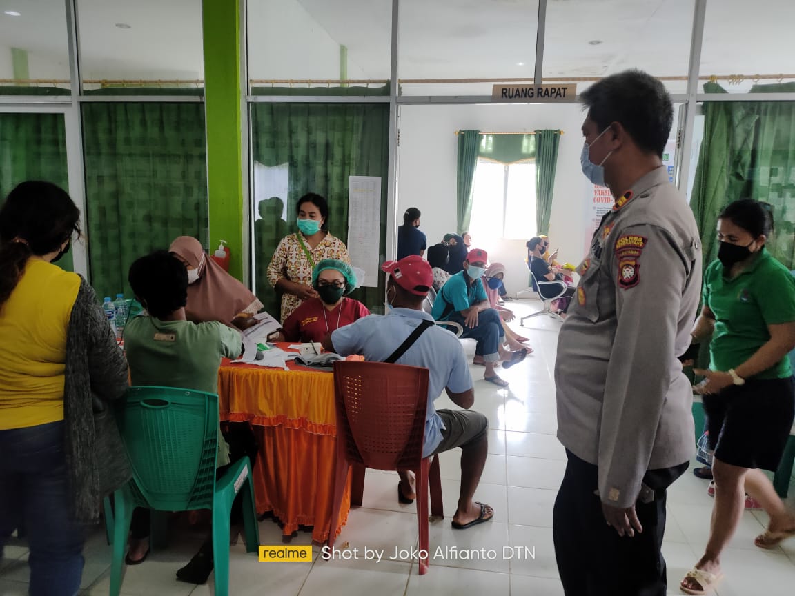 Anggota Polsek Ledo memberikan pelayanan Kepolisian berupa Pengamanan (Pam) di Puskemas Ledo pada saat pelaksanaan vakisnasi covid19 terhadap Masyarakat Ledo.
