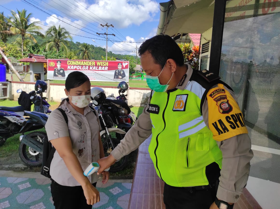Terlihat, setiap orang yang akan memasuki kantor Polsek Samalantan wajib mengikuti pemeriksaan suhu tubuh dan mencuci tangan menggunakan sabun serta harus menggunakan masker, Rabu (9/6/2021) pagi.