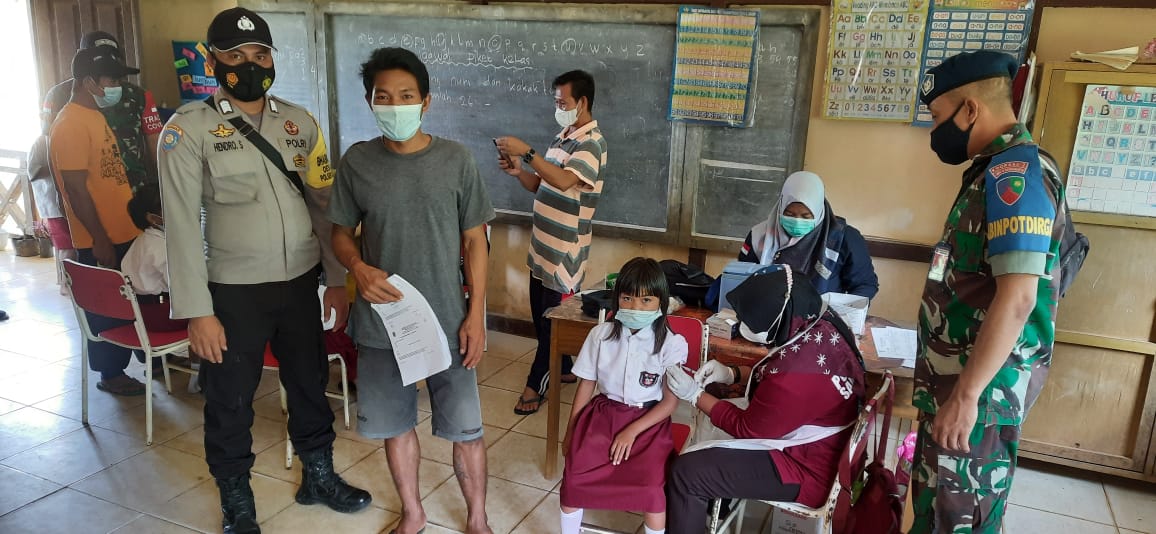 Peserta yang terdiri dari anak-anak pelajar SD dengan jumlah tervaksin 118 anak tampak mematuhi Protokol Kesehatan dengan wajib memakai masker serta tertib mendaftar kemudian dilakukan skrining tes terlebih dahulu sebelum disuntik,