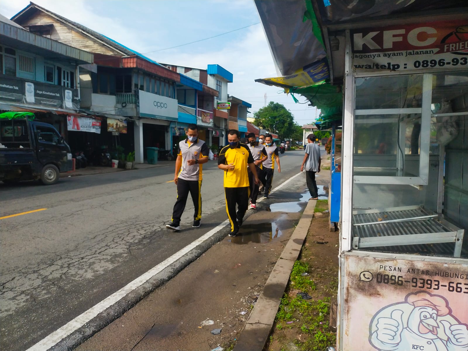 Kapolsek Sungai Raya memimpin kegiatan jalan santai di Pasar Sungai Duri untuk menjaga kebugaran tubuh dan mencegah penularan Covid 19.