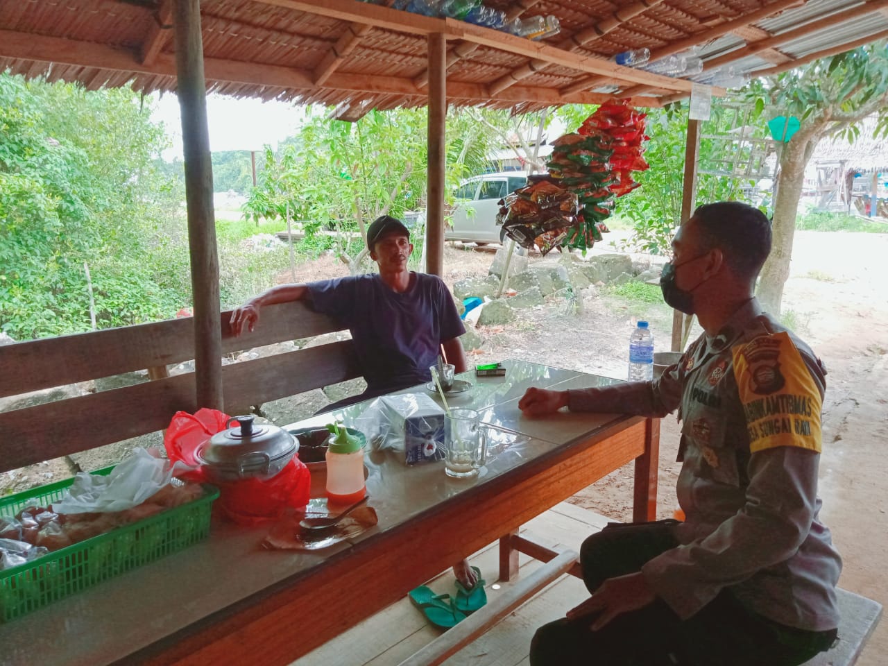 Anggota Polsek Sungai Raya Kepulauan Bripda Anang Rianda bersama rekan lainnya lakukan sambang dan berkoordinasi guna tangkal paham premanisme serta berita berita hoax yang berkembang dengan tokoh masyarakat Sungai Raya Senin pagi(14/06/2021).