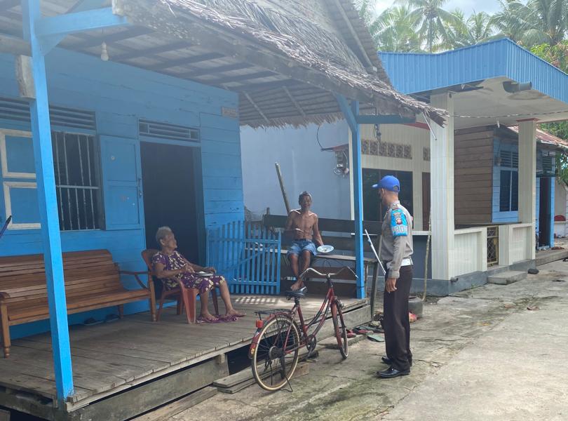 Anggota Polsek Sungai Raya Kepulauan Polres Bengkayang Polda Kalbar Aipda Delon dalam patrolinya itu juga menyampaikan pesan-pesan Kamtibmas kepada warga.