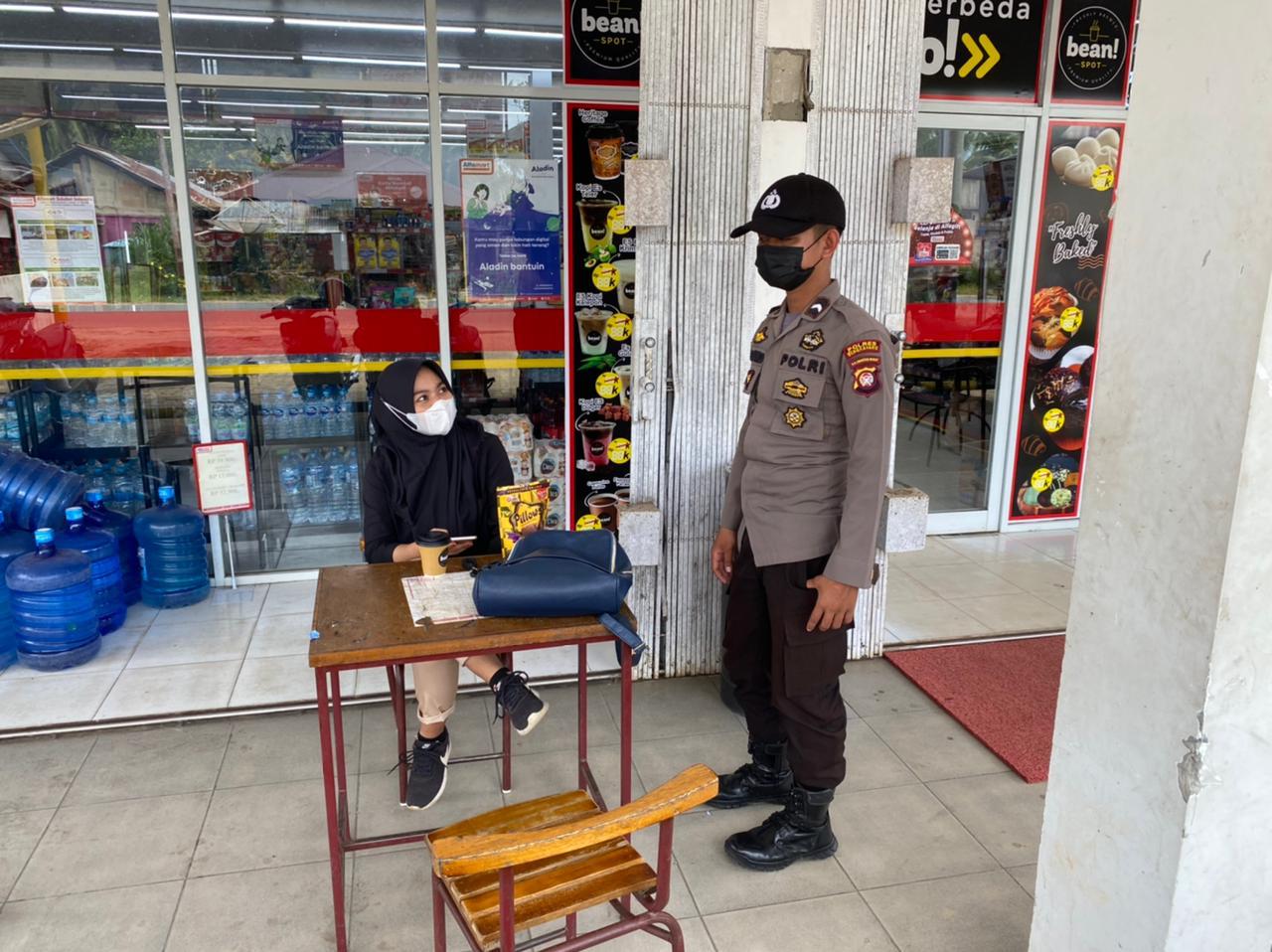 Personil Polsek Sungai Raya Kepulauan Bripda Arjund melakukan upaya untuk mencegah dan memutus mata rantai penyebaran Covid-19 atau virus corona dengan menyampaikan himbauan untuk tetap mematuhi anjuran pemerintah dalam memperhatikan protokol kesehatan dengan memperhatikan 5 M.