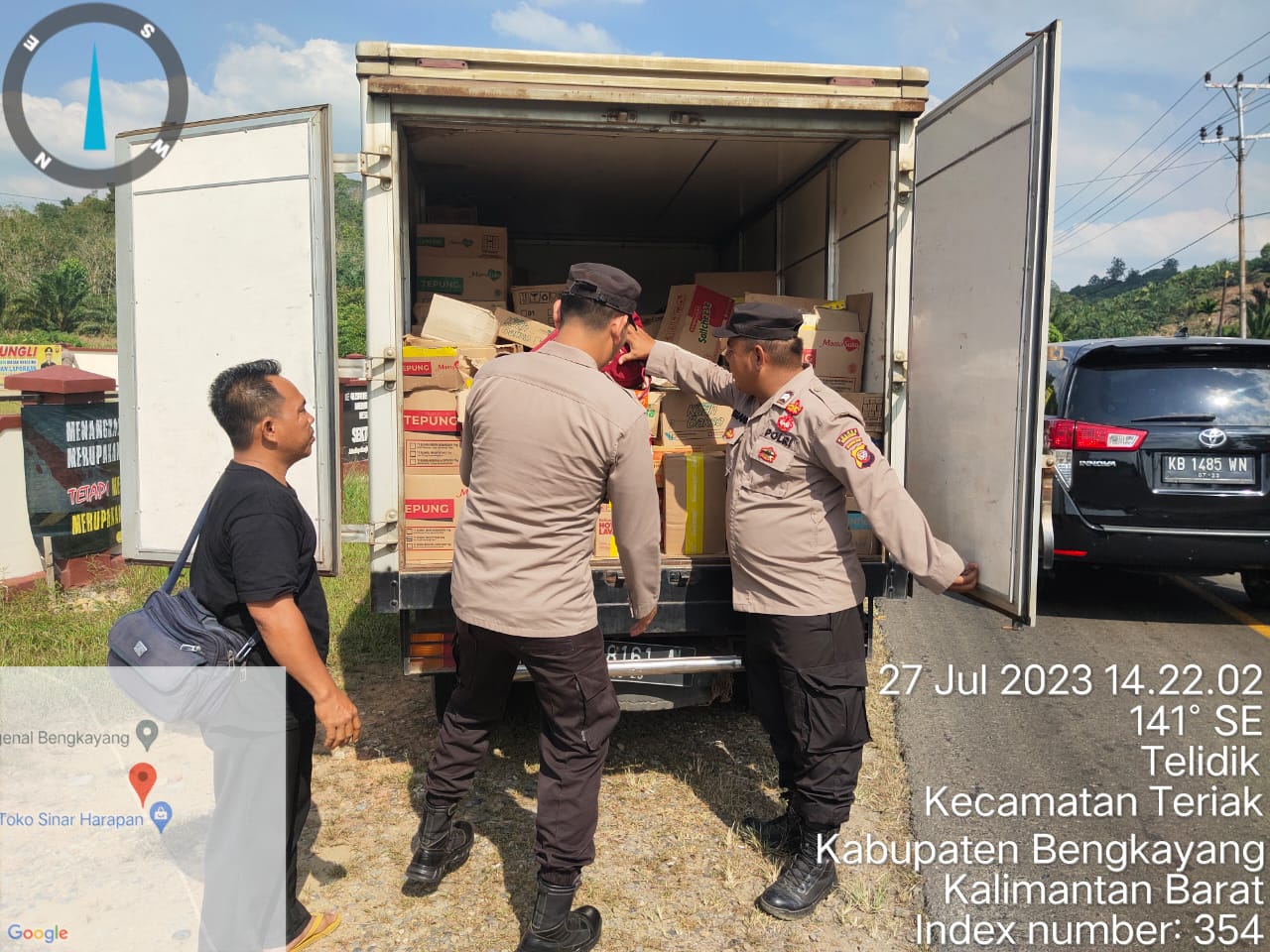Polres Bengkayang – Mengantisipasi masuknya barang ilegal dengan cara diselundupkan melalui jalur darat ke Dari Malaysia menuju Kabupaten Bengkayang, membuat aparat Kepolisian dari Polsek Teriak gencar melakukan razia dan pengawasan di sejumlah titik yang dianggap rawan terjadinya hal tersebut, Kamis (27/07/2023). Apalagi, kecamatan yang berada di Jalan Raya Kabupaten Bengkayang ini mengarah kearah pontianak serta berbatasan langsung dengan Kabupaten Landak, Oleh sebab itu, antisipasi terkait penyelundupan barang ilegal perlu penanganan dan pengawasan khusus dari pihak berwajib. Kapolsek Teriak. Iptu Dwiyanto Bhanu Susilo saat dikonfirmasi terpisah mengatakan, pihaknya rutin melaksanakan razia dan pengawasan terhadap kendaraan roda 4 dan roda 6 yang melintasi wilayah hukum polsek teriak. Dari hasil kegiatan tersebut, hingga kini belum ditemukan adanya barang ilegal yang dibawa atau sengaja diselundupkan ke Kabupaten Bengkayang. “Sejauh ini, kita belum menemukan adanya pelanggaran terkait penyelundupan barang ilegal atau adanya kendaraan yang membawa barang ilegal yang tidak disertai dokumen resmi masuk ke Kecamatan teriak,” ucapnya. Meski demikian, razia dan pengawasan ini akan terus dilakukan pihaknya untuk mengantisipasi agar para oknum nakal yang nekat menyelundupkan barang ilegal bisa ditindak sesuai aturan yang berlaku. “Yang pasti kita tidak mau kecolongan dan jangan sampai lengah menghadapi kasus penyelundupan barang ilegal ini. Sebab hal tersebut bisa saja terjadi sewaktu-waktu,” ujar Kapolsek.