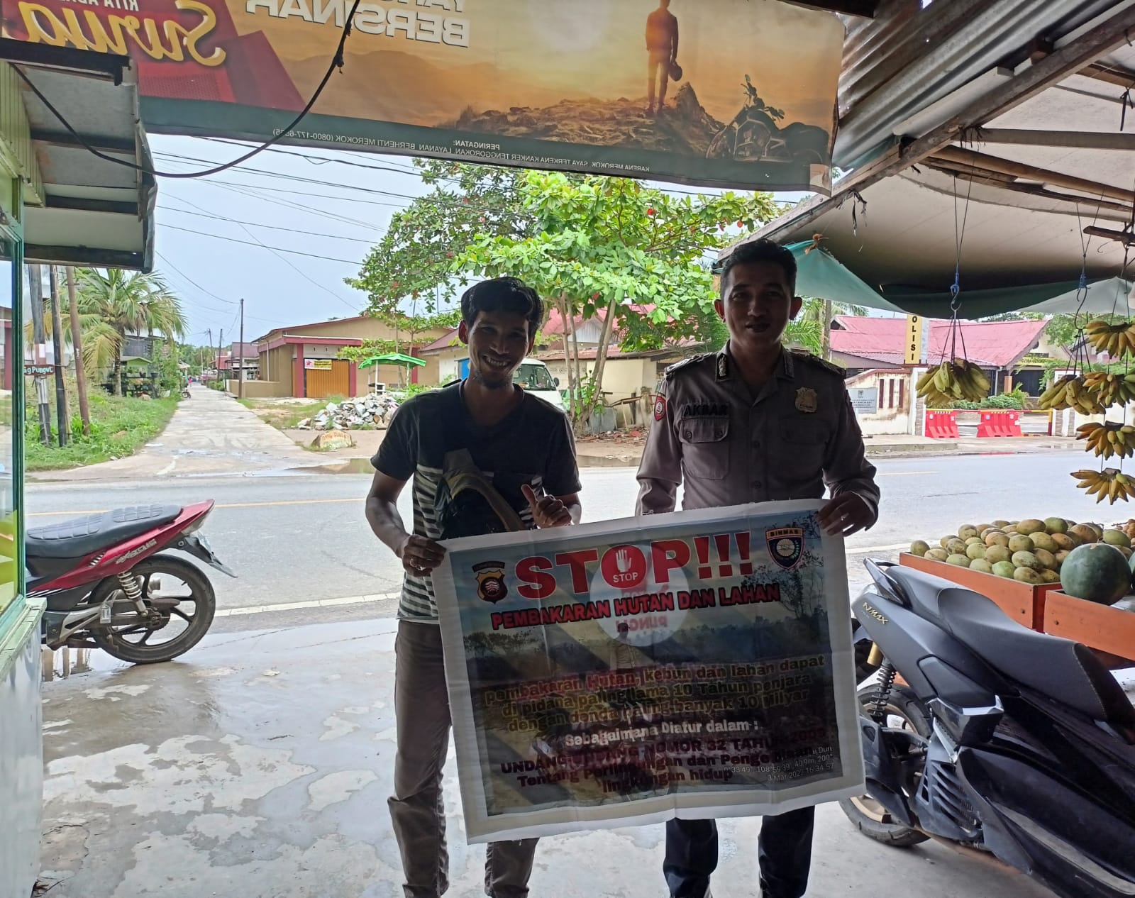 Disamping melaksanakan penyampaian himbauan, Personil Polsek Sungai Raya juga menyampaikan pesan pesan kepada masyarakat agar segera mungkin melaporka. Kepada personil Polsek Sungai Raya jika mengetahui kejadian kebakaran ataupun orang yang dengan sengaja melakukan pembakaran lahan karena dapat dihukum berdasarkan undang – undang yang berlaku.