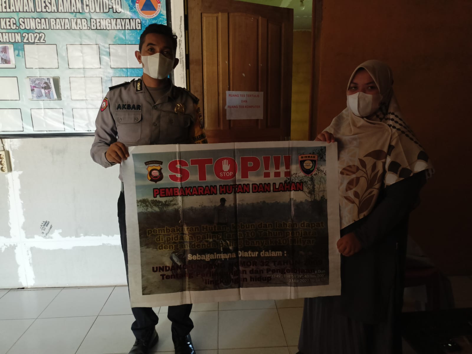 Disamping melaksanakan penyampaian himbauan, Personil Polsek Sungai Raya juga menyampaikan pesan pesan kepada masyarakat agar segera mungkin melaporka. Kepada personil Polsek Sungai Raya jika mengetahui kejadian kebakaran ataupun orang yang dengan sengaja melakukan pembakaran lahan karena dapat dihukum berdasarkan undang – undang yang berlaku.