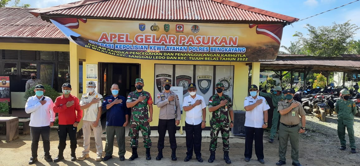 Kapolsek Sanggau Ledo, Ipda Dwiyanto Bhanu.S, SIP, bertindak sebagai Irup/pimpinan Apel, Turut hadir Camat Sanggau Ledo, Drh. Dedy Rinaldy, Danramil 1202 Sanggau Ledo, Peltu A. Bashori, Mewakili Lanud HAD, Letda Kesuma, Kepala BKSDA Resort Sanggau Ledo, Musa, Kepala Resort Manggala Agni, Ely, Mewakili Camat 17, Kasi Trantib Viktorius, Kades Lembang, Andri. Y