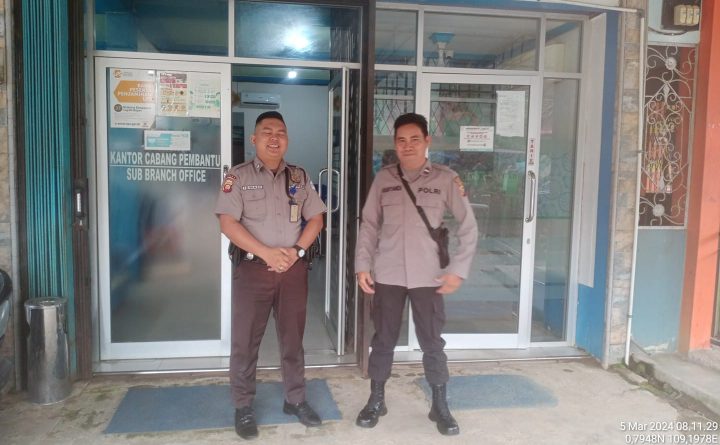 Tribratanews.polri.go.id – Polda Kalbar – Polres Bengkayang – Polsek Samalantan. Kapolsek Samalantan AKP Suyatno, S.H., M.A.P. menekankan jajarannya untuk mengambil langkah-langkah guna terpelihara Kamtibmas wilayah. Aipda Parmin selaku Kanit Binmas dan La SPKT Regu II Aipda Rustandi tindak lanjuti perintah kapolsek dan segera meluncur ke Bank Kalbar Samalantan di Dusun Semano Desa Samalantan Rabu (6/3/2024)..