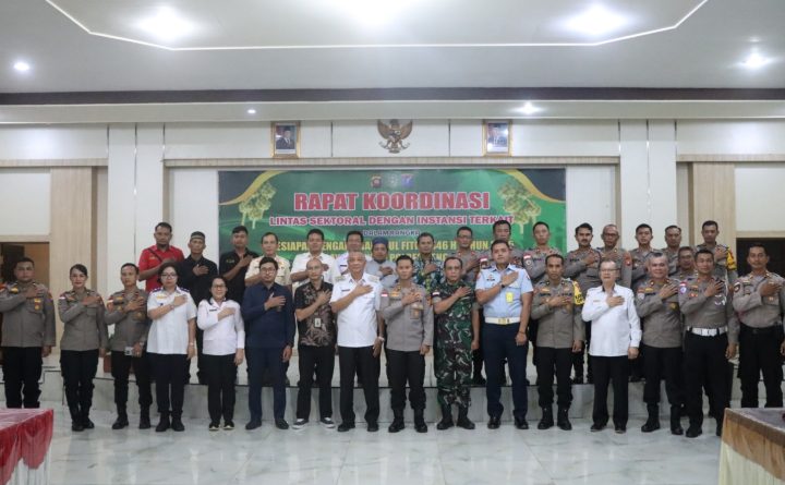 Bengkayang, Kalbar – Menjelang Hari Raya Idul Fitri 1446 H, Polres Bengkayang Polda Kalbar menggelar Rapat Koordinasi Lintas Sektoral bersama berbagai instansi terkait di Aula Tunggal Panaluan Polres Bengkayang, Rabu (19/3). Rapat ini bertujuan untuk memastikan kesiapan pengamanan dan kelancaran perayaan Idul Fitri di wilayah hukum Polres Bengkayang. Adapun rapat tersebut diikuti oleh Kapolres Bengkayang..