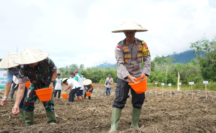 Bengkayang, Kalbar – Mendukung program Presiden Republik Indonesia Jenderal TNI (HOR) (Purn.) Prabowo Subianto terkait ketahanan pangan, Polres Bengkayang Polda Kalbar menggelar Launching Gugus Tugas Polri dengan menanam jagung di lahan Pertanian Jalan Bukit Karmel, Kelurahan Sebalo, Kecamatan Bengkayang, Kabupaten Bengkayang, Rabu (20/11/24) pagi. Kegiatan ini dilaksanakan secara serentak bersamaan dengan launching Gugus Tugas Polri..