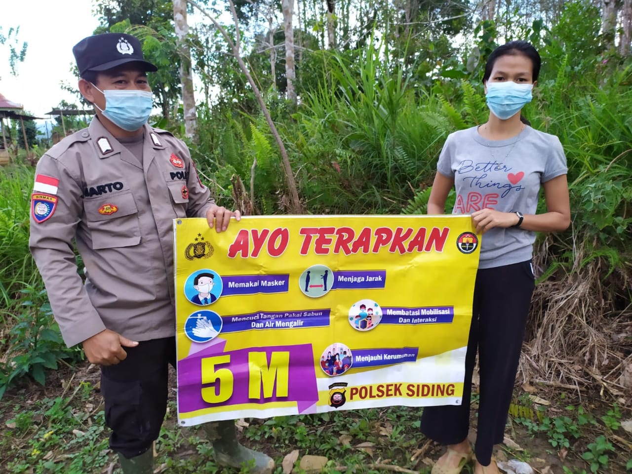 Dalam kegiatannya, Bripka Bartolomeus selaku Bhabinkamtibmas desa Sungkung 3 mengingat kan warga terus disiplin 5 M; Memakai masker, Mencuci tangan, Menjaga Jarak, Membatasi Mobilitas dan interaksi, Menjauhi Kerumunan.
