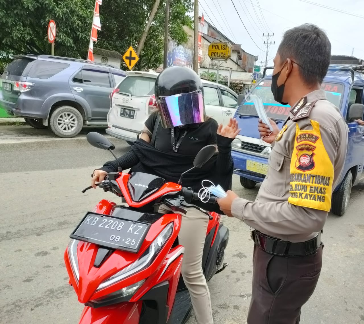 “Selalu gunakan masker, menjaga jarak, dan sering mencuci tangan dengan sabun (3M),” imbau Bripka Julkarnain