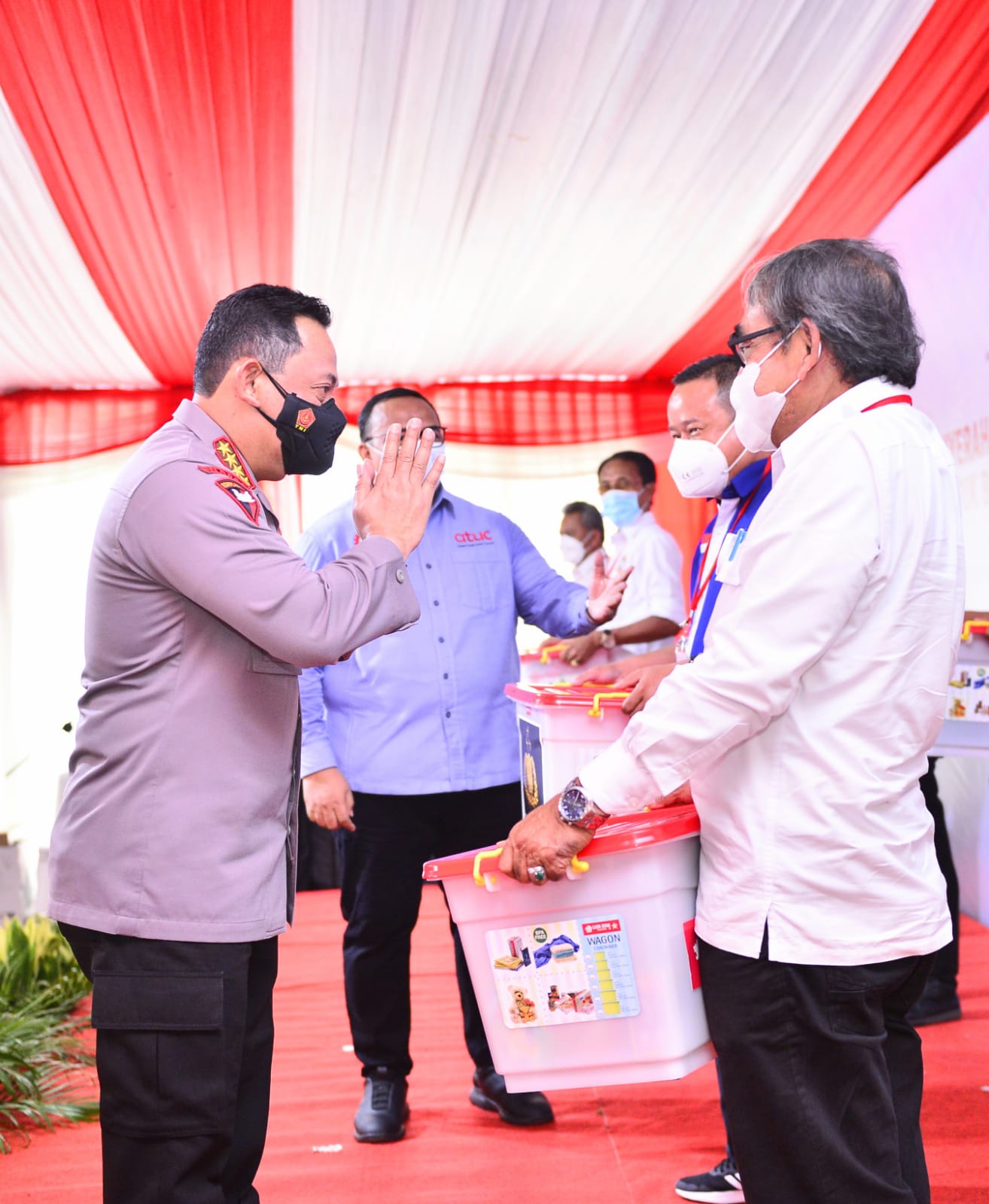Sementara itu, Presiden KSPSI Andi Gani Nena Wea mengucapkan terima kasih atas perhatian Kapolri yang sudah memberikan bantuan terhadap buruh, baik pembagian sembako maupun vaksinasi.