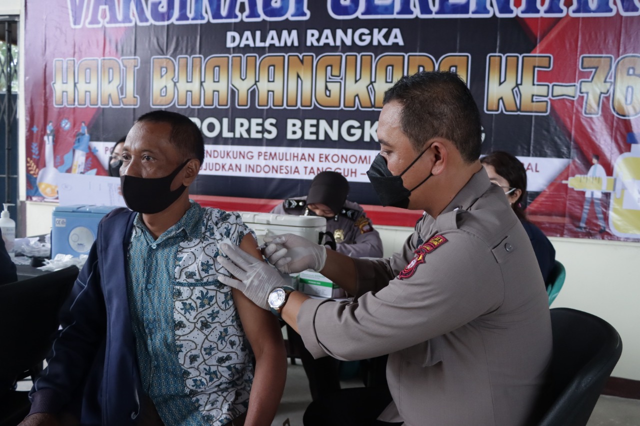 “Polres Bengkayang melaksanakan kegiatan dalam rangka Hari Ulang Tahun Polri Ke-76 yaitu dengan menggelar Vaksinasi Massal, Sunatan Massal dan Cek Kesehatan bagi masyarakat di Kabupaten Bengkayang. Adapun peserta dari berbagai kalangan masyarakat baik anak-anak yang tidak mampu maupun masyararakat yang belum melakukan Vaksinasi, baik Vaksinasi Dosis 1, Dosis 2 maupun Boster”, kata Kapolres Bengkayang.
