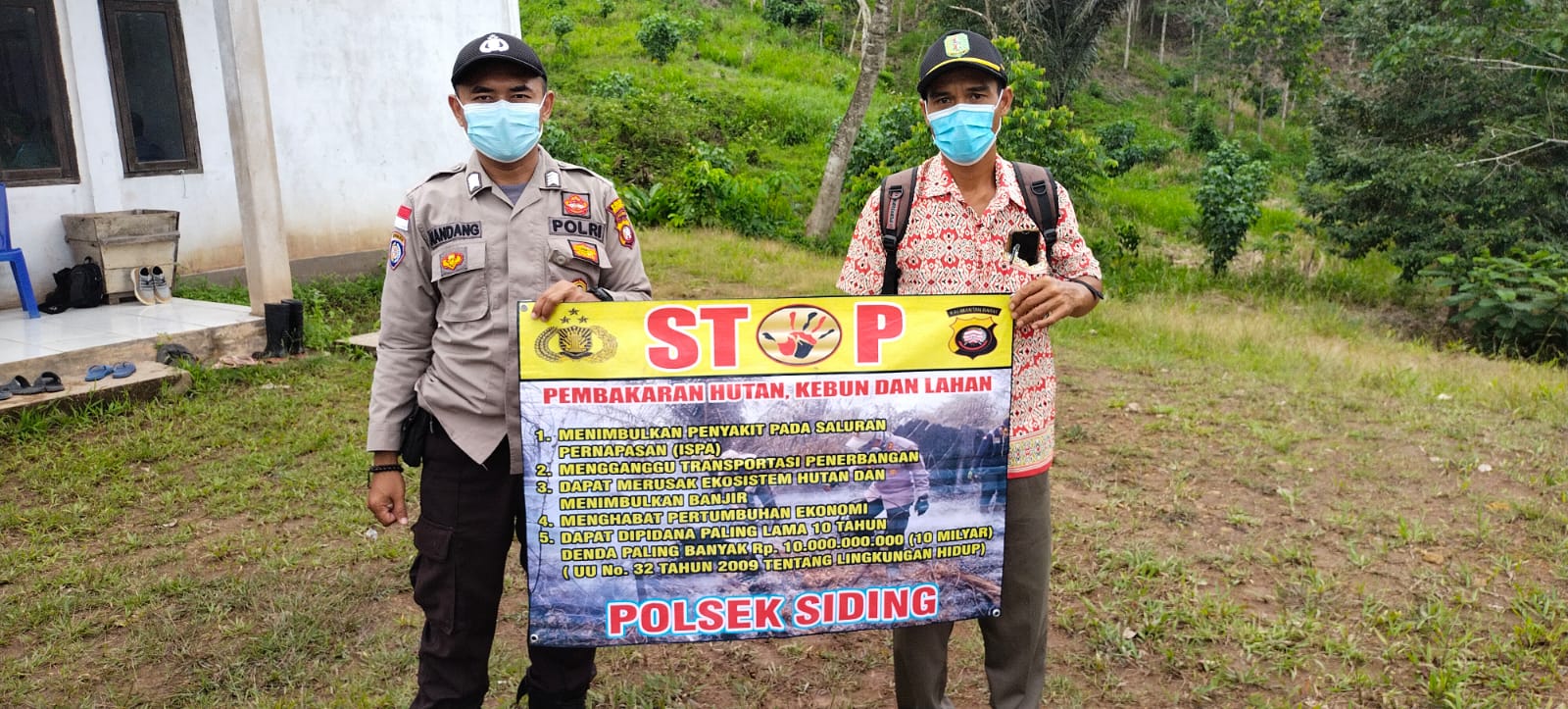 Kapolsek Siding Polres Bengkayang Ipda Bambang Rudiyanto melalui Ps. Kanit Binmas Polsek Siding Bripka Nandang Prasojo menerangkan bahwa Polsek Siding rutin melaksanakan himbauan dan sosialisasi kepada masyarakat, baik itu tentang kamtibmas, protokol kesehatan dan tentang karhutla.