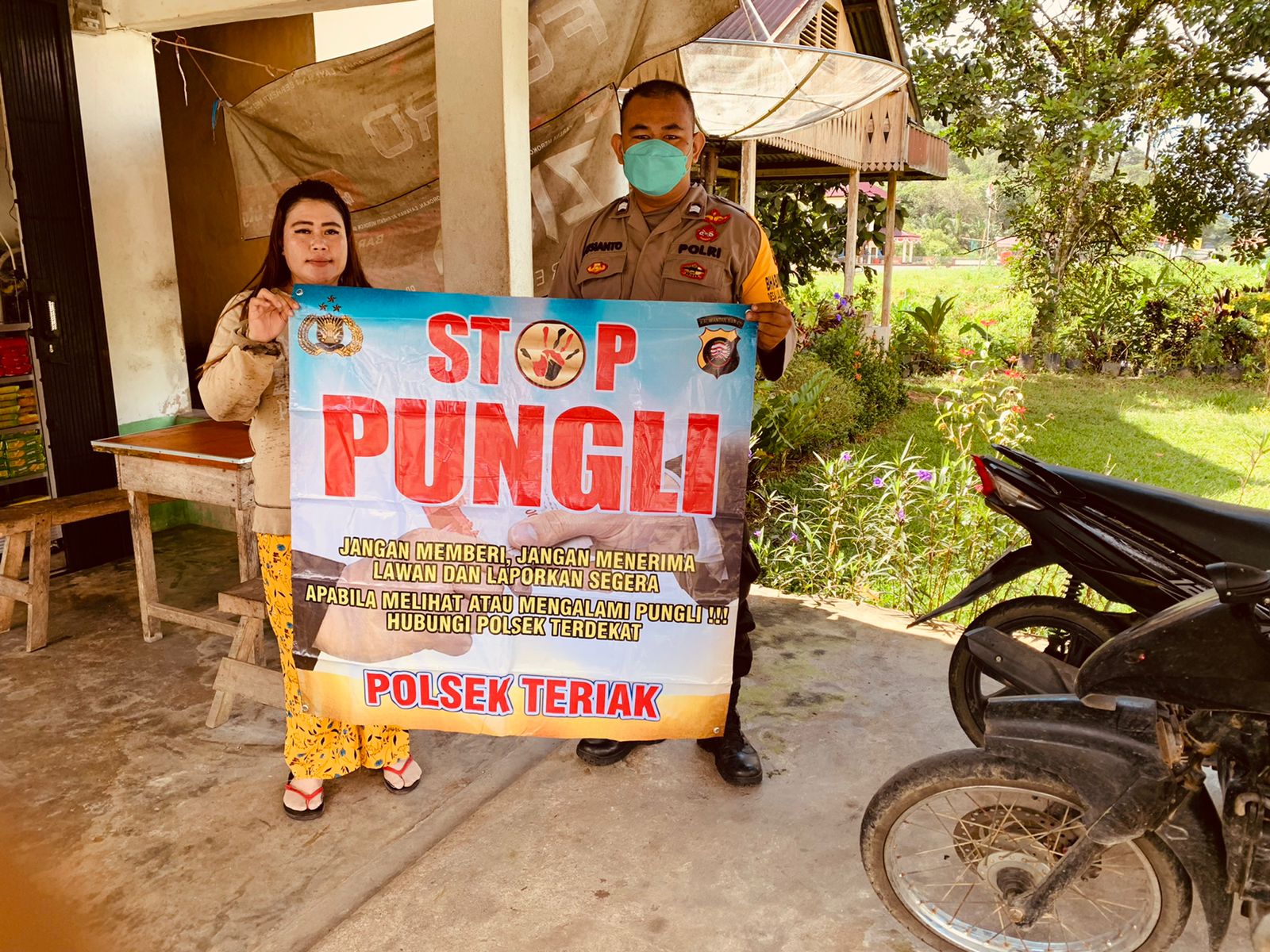 Seperti yang dilakukan Bhabinkamtibmas Desa Lulang kecamatan Teriak kabupaten Bengkayang, Briptu Susianto bersama Warga binaannya membentangkan benner Saber publi, di desa Lulang kecamatan Teriak kabupaten Bengkayang.
