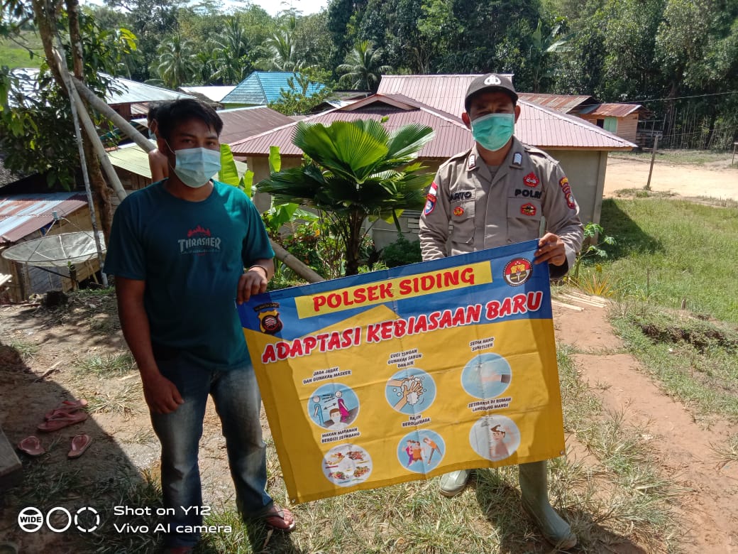 Ditempat terpisah Kapolsek Siding Ipda Bambang Rudiyanto, menjelaskan bahwa “Pemerintah telah memberlakukan kewajiban melaksanakan tata cara pola hidup sehat sesuai protokol kesehatan kepada seluruh masyarakat, dalam rangka pencegahan terhadap penularan COVID-19 lewat udara, berikan imbauan secara preventif agar dapat meluluhkan kesadaran masyarakat”.