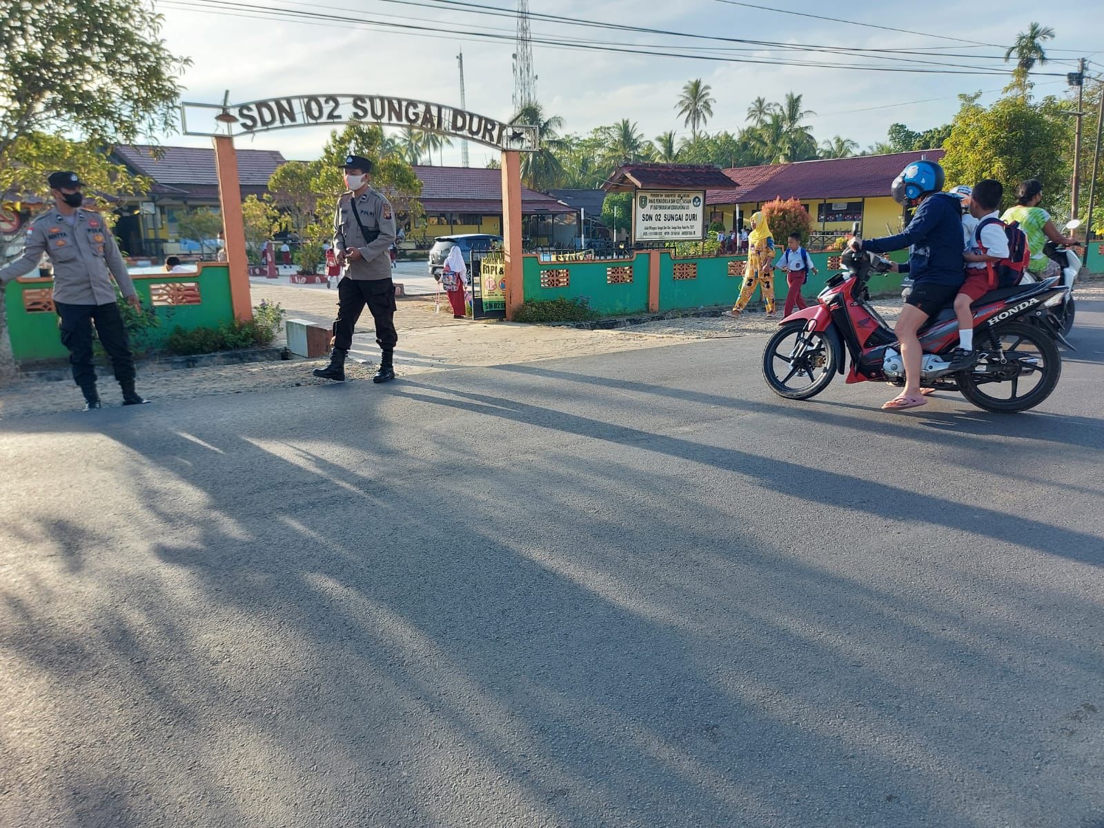 Untuk mengantisipasi terjadinya kemacetan lalu lintas pada pagi hari mulai pukul 06.15 Wib sampai dengan pukul 07.20 Wib, Personil Polsek Sungai Raya melaksanakan protap pagi berupa pengaturan arus lalu lintas.