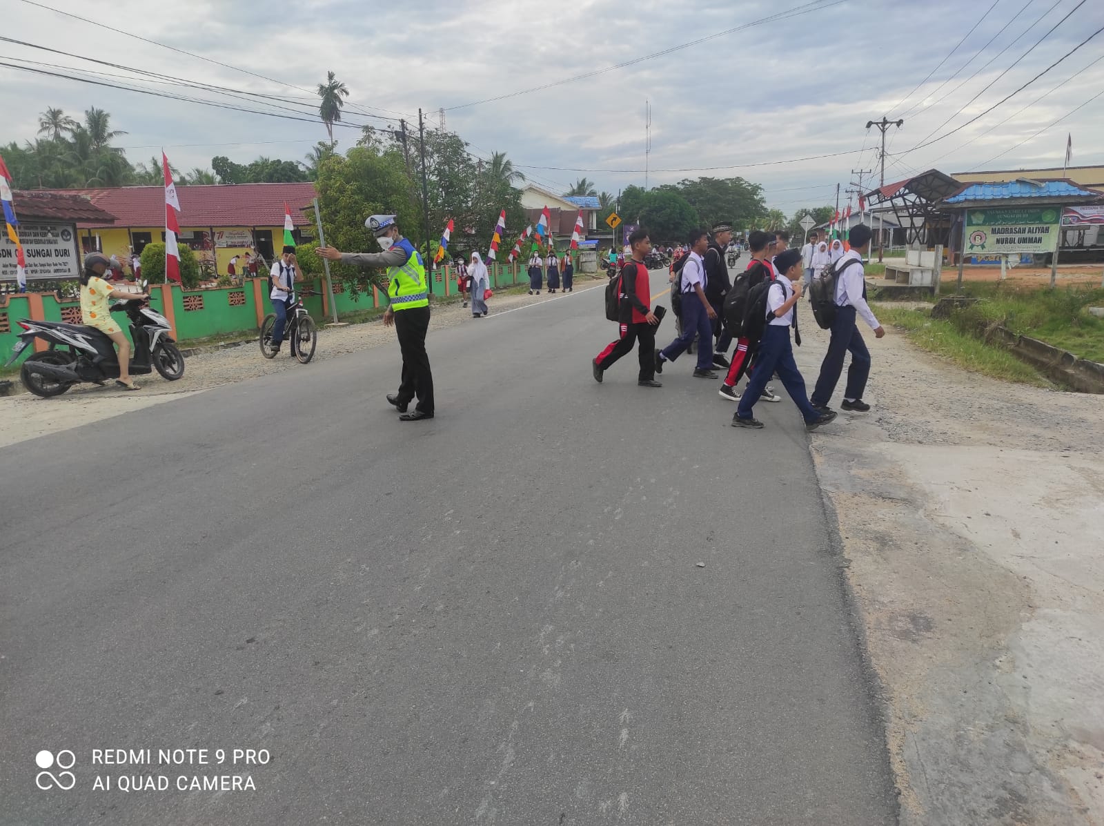 Untuk mengantisipasi terjadinya kemacetan lalu lintas pada pagi hari mulai pukul 06.15 Wib sampai dengan pukul 07.20 Wib, Personil Polsek Sungai Raya melaksanakan protap pagi berupa pengaturan arus lalu lintas.