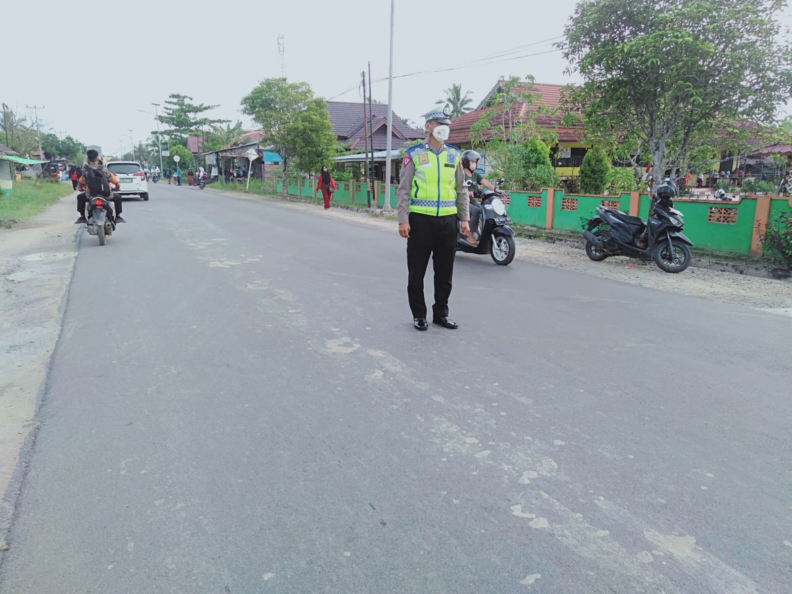 Untuk mengantisipasi terjadinya kemacetan lalu lintas pada pagi hari mulai pukul 06.15 Wib sampai dengan pukul 07.20 Wib, Personil Polsek Sungai Raya melaksanakan protap pagi berupa pengaturan arus lalu lintas.