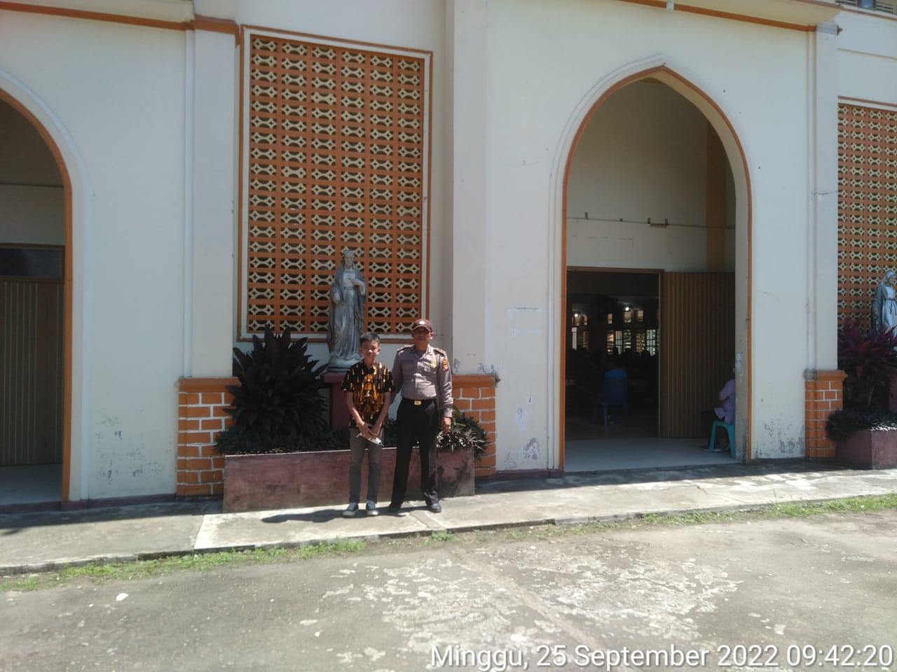 Anggota Polsek Bengkayang Polres Bengkayang dipimpin oleh Kanit SPK Polsek Bengkayang Aipda Zainudin pada hari Minggu tanggal 25 September 2022 pagi melaksanakan pengamanan Misa di gereja Santo Pius X Bengkayang di Kelurahan Bumi Emas kecamatan Bengkayang Kabupaten Bengkayang.