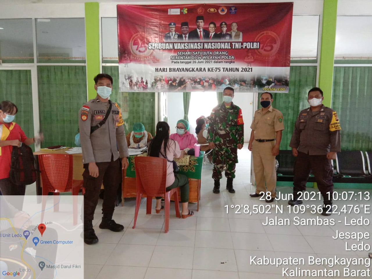 Dalam kegiatan pengamanan vaksinasi tersebut, personil Polsek Ledo yang dilibatkan adalah Bripka Ali Imron dan Bripda Egga Owwisa Diamanta.