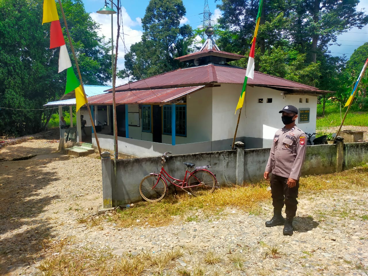 Polsek Lumar Polres Bengkayang Polda Kalimantan Barat, melaksanakan pengamanan (Pam) di masjid Al Muhtadin di Desa Belimbing Kecamatan Lumar Kabupaten Bengkayang Provinsi Kalimantan Barat, seperti yang terlihat BRIPTU RUSLAN sedang Melaksanakan Pengamanan di Masjid, Jum’at, (23/07/2021).