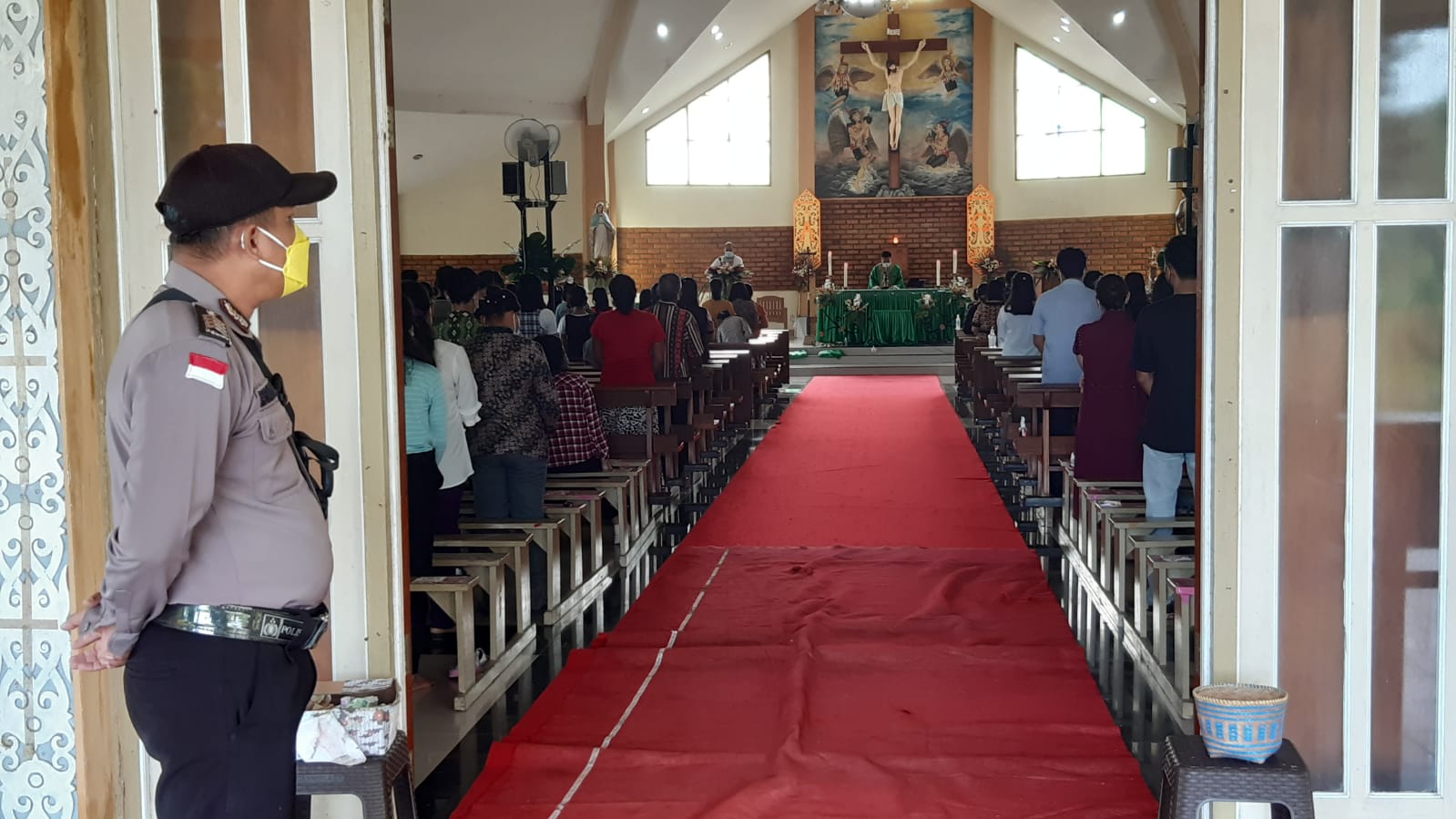 Polres Bengkayang – Polsek Samalantan. Anggota Polsek Samalantan Polres Bengkayang melaksanakan pengamanan (Pam) di Gereja Paroki Santo Yosep Desa Samalantan Kecamatan Samalantan pada Minggu tanggal 22 Agustus 2021 pagi.