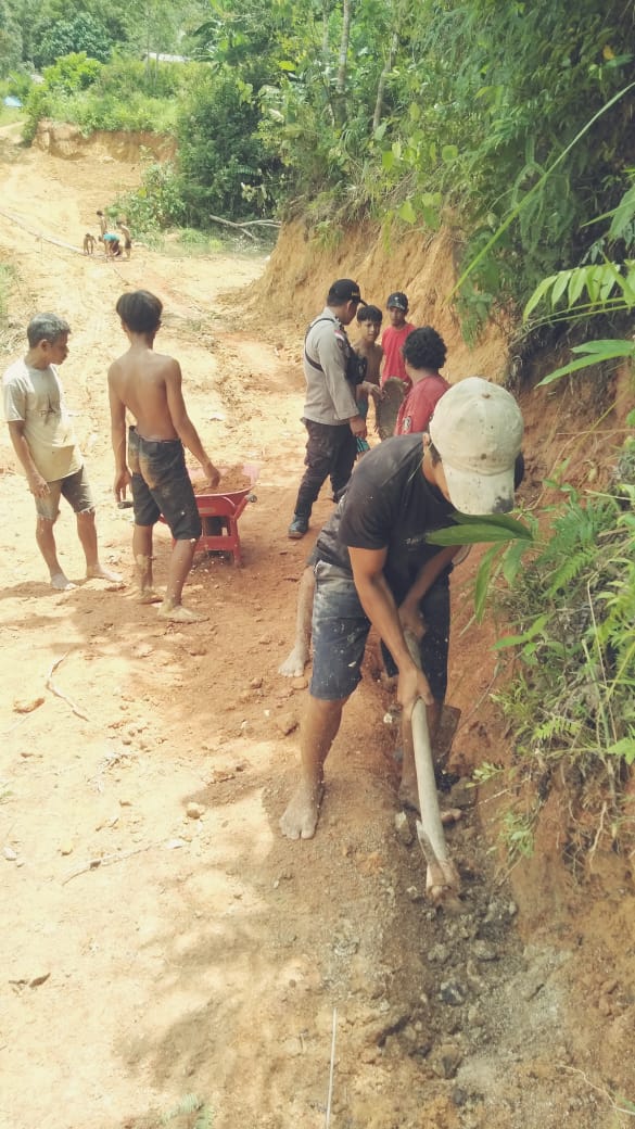 Seperti yang dilakukan Bhabinkamtibmas Desa Bhakti Mulya Aipda Petronius Deni bersama masyarakat melaksanakan Giat Gotong royong membersihkan Jalan dari reruntuhan longsor, Sabtu (29/10/2022).