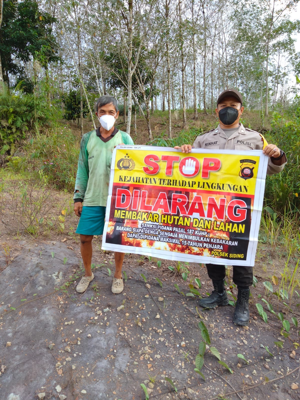 Bripka Minhat mengingatkan warga untuk tidak membuka lahan dengan cara membakar, karena dapat merusak ekosistem hutan dan menyebabkan polusi udara.