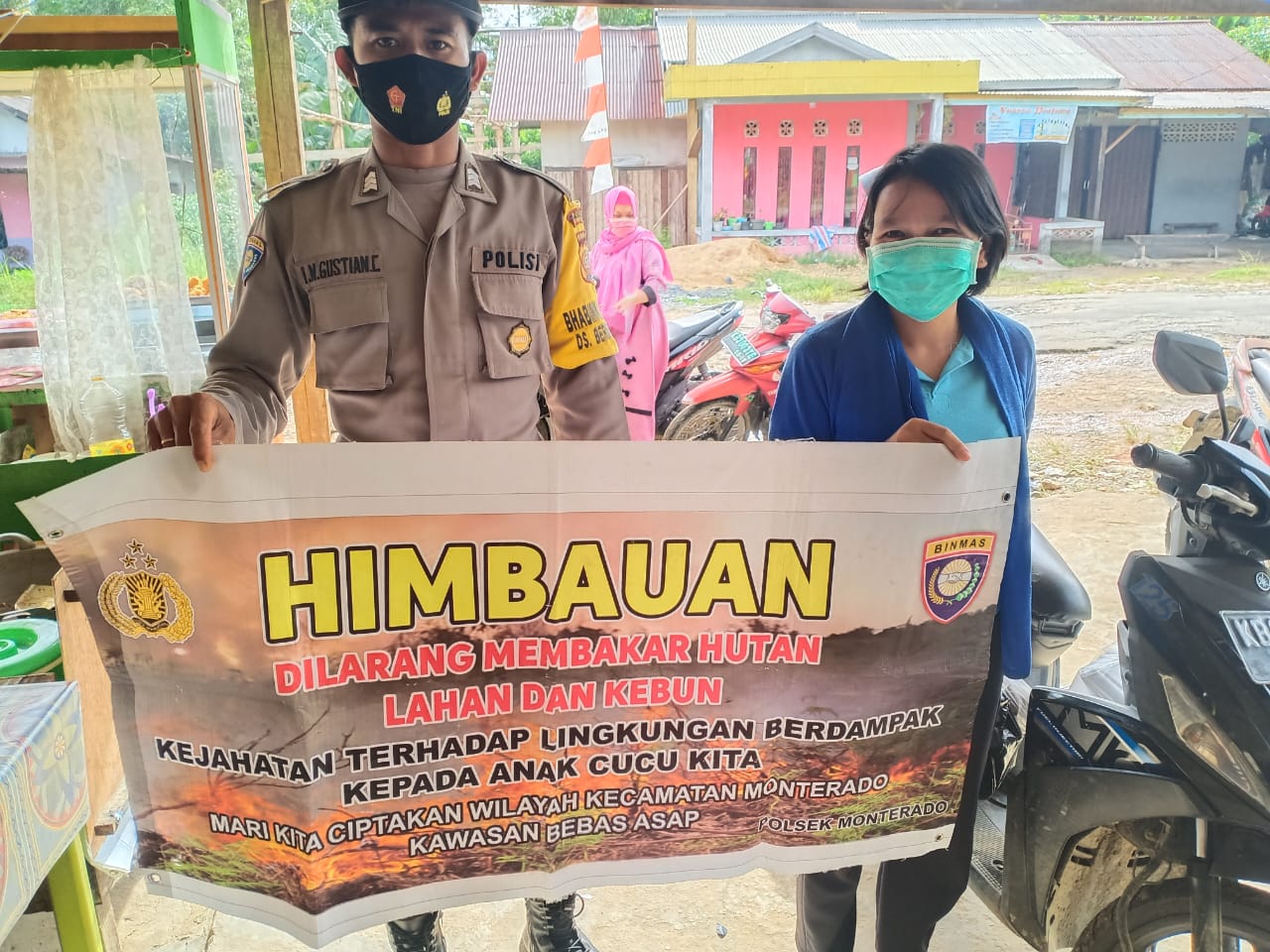 Polres Bengkayang – Pencegahan terjadinya Karhutla selalu rutin disampaikan kepada masyarakat dengan humanis oleh Bhabinkamtibmas Polsek Monterado.