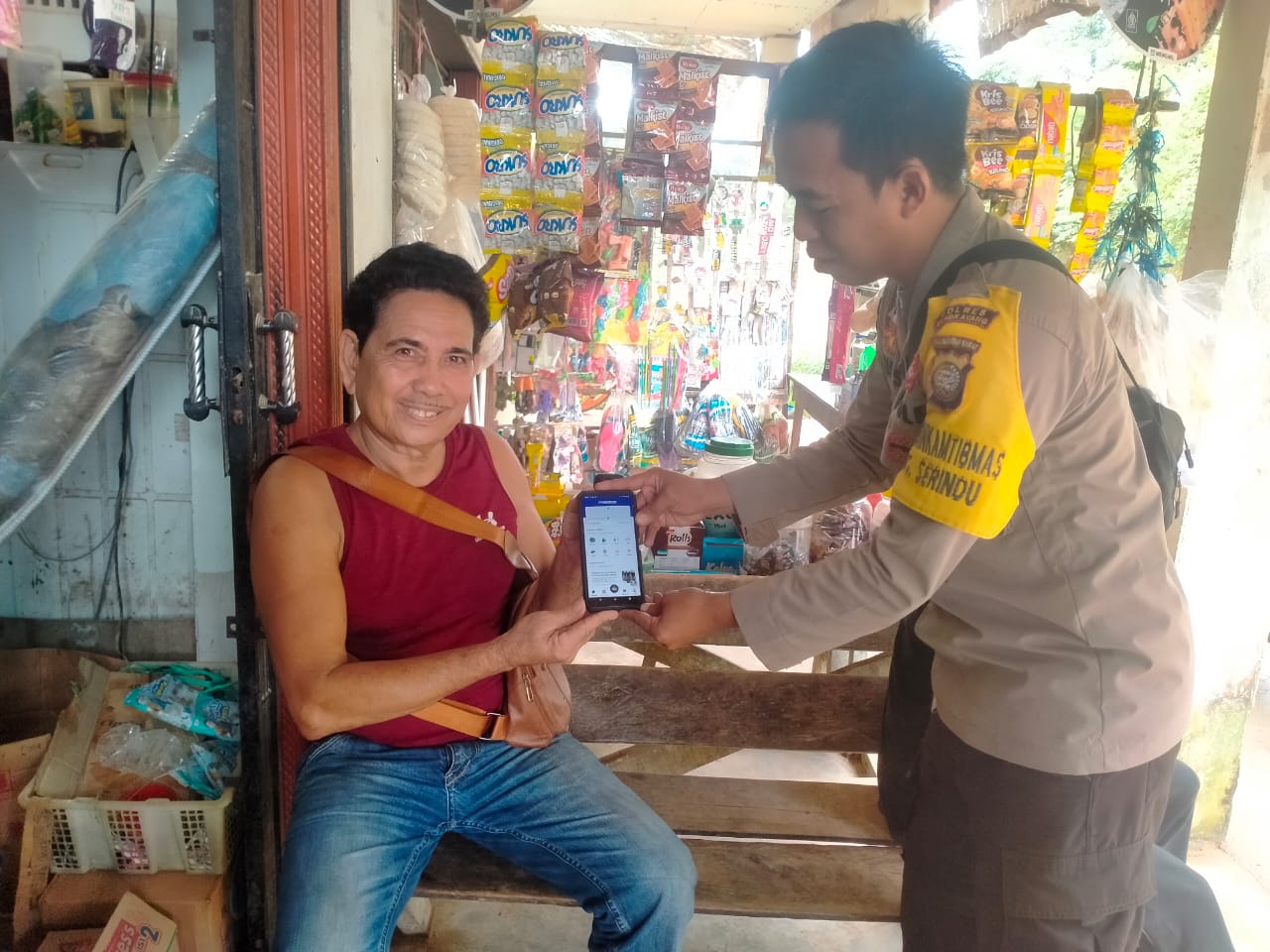 Tribratanews.polri.go.id.polda kalbar,polres bengkayang,polsek Monterado melakukan KRYd (Kegiatan rutin yang di tingkatkan) Sambil Patroli Bhabinkamtibmas Briptu Aris S sosialisasi Super App kepada Warga.