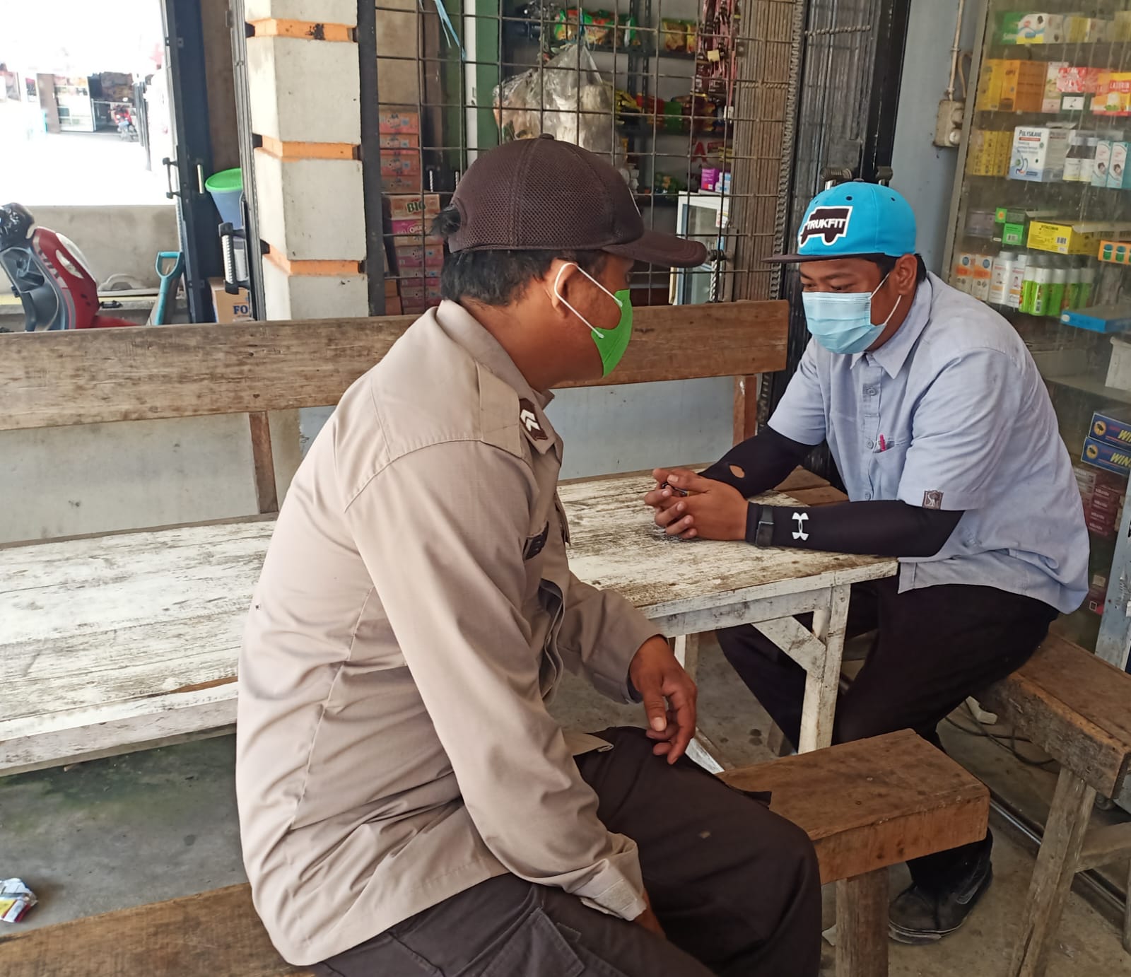 “Tetap patuhi Protokol Kesehatan 5M diantaranya menjaga jarak, mencuci tangan dengan sabun, makai masker, menjauhi kerumunan dan mengurangi mobilitas”, ucap Briptu Heri saat menjumpai warga Desa Nek Ginap di sebuah warung.