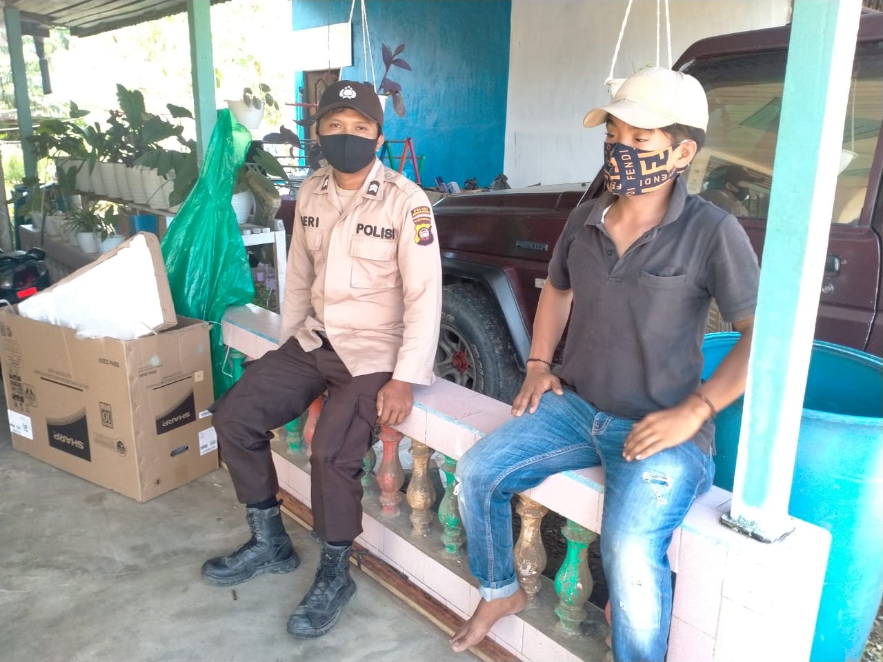 Pada kesempatan tersebut Briptu Heri memberikan pesan- pesan Kamtibmas kepada warga dan untuk mengikuti himbauan pemerintah mematuhi Protokol Kesehatan 5 M dalam mencegah penularan Virus Covid19, serta turut menjaga keamanan lingkungan agar situasi desa tetap kondusif.