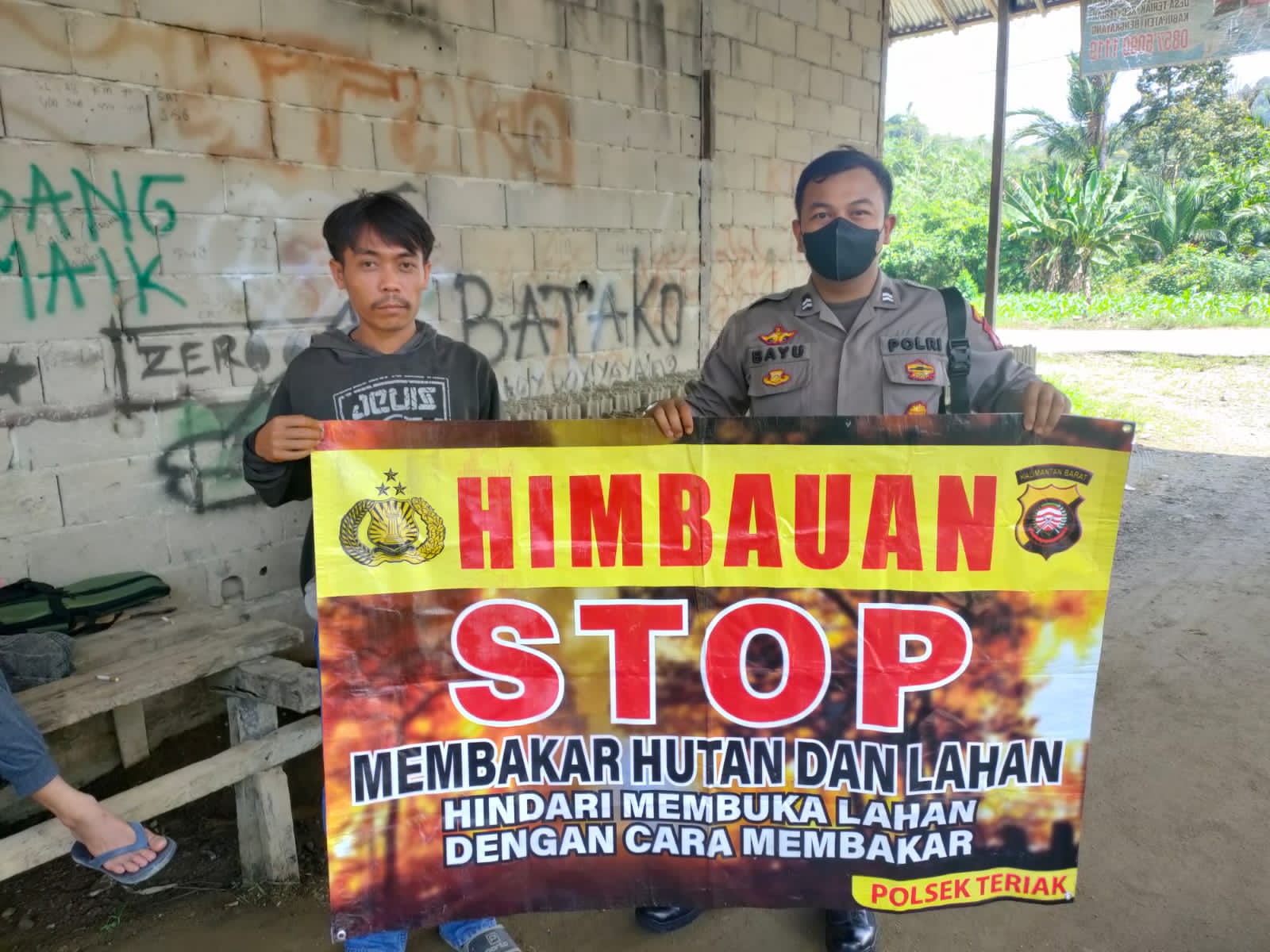 Polda kalbar, Polres Bengkayang, Polsek Teriak. Dengan adanya himbauan Pemerintah tentang bahaya karhutla Bhabinkamtibmas yang tidak henti-hentinya menyampaikan himbauan baik melalui tapka, menggunakan banner maupun melalui perangkat media sosial, yang diharapkan masyarakat tetap mematuhi himbauan pemerintah yang dilaksanakan pada hari Rabu 27/07/2022